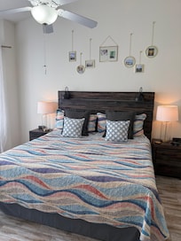 As soon as you enter the newly restyled interior, you know you are on vacation! Cool beach accents and stylish Disney decor compliment the new furnishings throughout. The lounge area has sofas, a Smart TV, ceiling fan and sliding doors out to the spacious pool deck. Plus there is a coffee station equipped with a Keurig coffee maker.