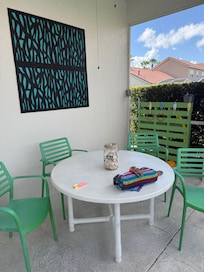 After a long day riding the roller coasters, you will love heading home to your private full-sized, west-facing pool with spa! The screened-in pool deck has a shaded dining area and sun loungers. There is also an outdoor (unscreened) courtyard lounge with comfortable seating. The pool and spa can be heated (pre-bookable optional extra) and a pool security fence is provided for families with small children.