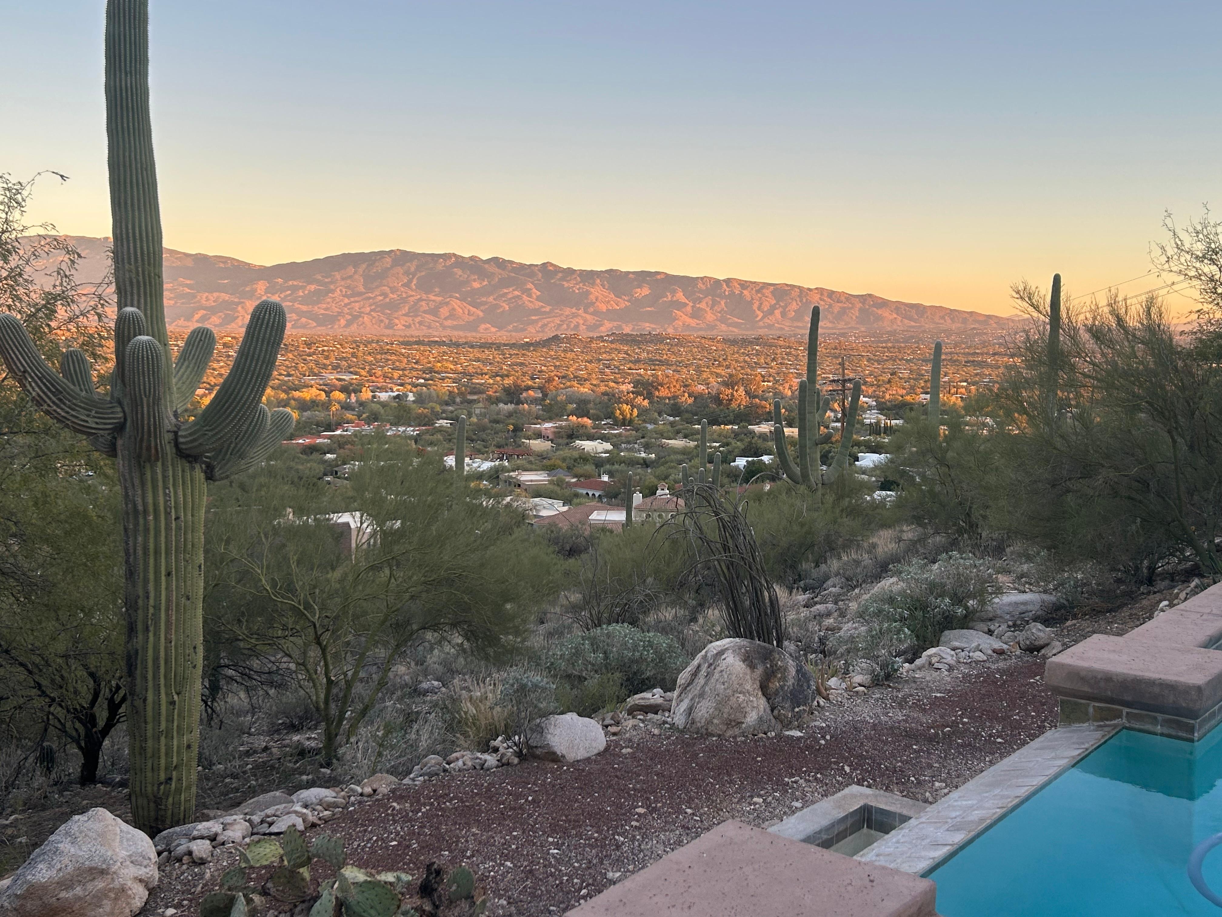 good, not great bang for buck, since the hot tub is an additional charge every 4 hours, and its not quite as described. The kitchen is well stocked and the casita is well furnished, the beds are very comfortable, although one is a Murphy bed. The views are spectacular, it overlooks the east part of the desert you can watch the sunrise from the patio (or the hot tub-if you pay to have it on). There were plenty of towels and bathrobes, the art is beautiful and the library is well stocked-I recognized a well traveled and read individual had curated this place. The couches were comfortable and we could see the Catalina mountains from the living room. There is no washer dryer, and theres a set of deep short steps from the upper level to the lower bedrooms that werent mentioned, that were annoying, especially at night. The bathroom was good, but the shower has a built in slate basin thats 14 inches from the counter base, the toilet is behind that, its a tight fit in there, so there were lots of stubbed toes and caught feet on that. The driveway is really steep and tight, pulling in and out of it was do-able but a big hassle. Something I noticed generally; there are a lot of ledges and drop offs, and steep areas around here, especially around the pool the patio and edges of the house (makes sense, it is on a cliff) this isnt somewhere an older person or young kids would be safe staying-that wasn't a problem for us this trip, but id have worried about a toddler or grandma here.