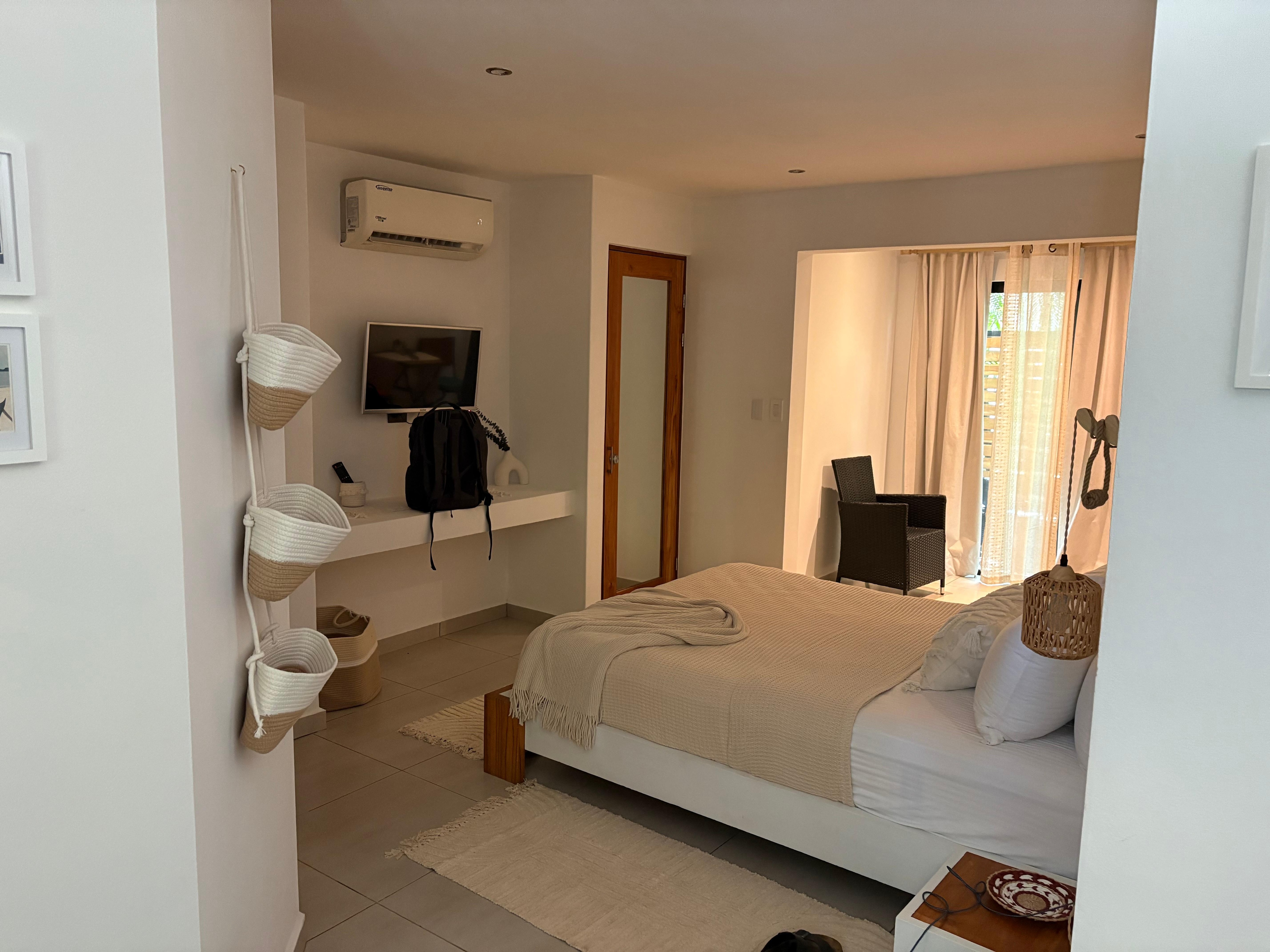 Plantara Studio apartment #1, less than a 5-minute walk to the beautiful white sand beach, lined with palm trees and a green mountain background, to the best restaurants in town. Plantara is conveniently located minutes from the Gilded Iguana Hotel Bar & Restaurant, flanked by Destiny Café for a fresh smoothie or bowl in the morning, El Jardin Coffee Bus for your world-famous Costa Rican morning coffee, La Brasa Argentinian Grill, and Guiones Brewing Company for an excellent evening meal. If you are looking for adventure, look no further, quad rentals, deep sea fishing, yoga for all levels, and ziplining are all minutes from this centrally located boutique apartment building of only four units.