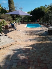 Detached house with several terraces and pool, close to the beach, free WLAN