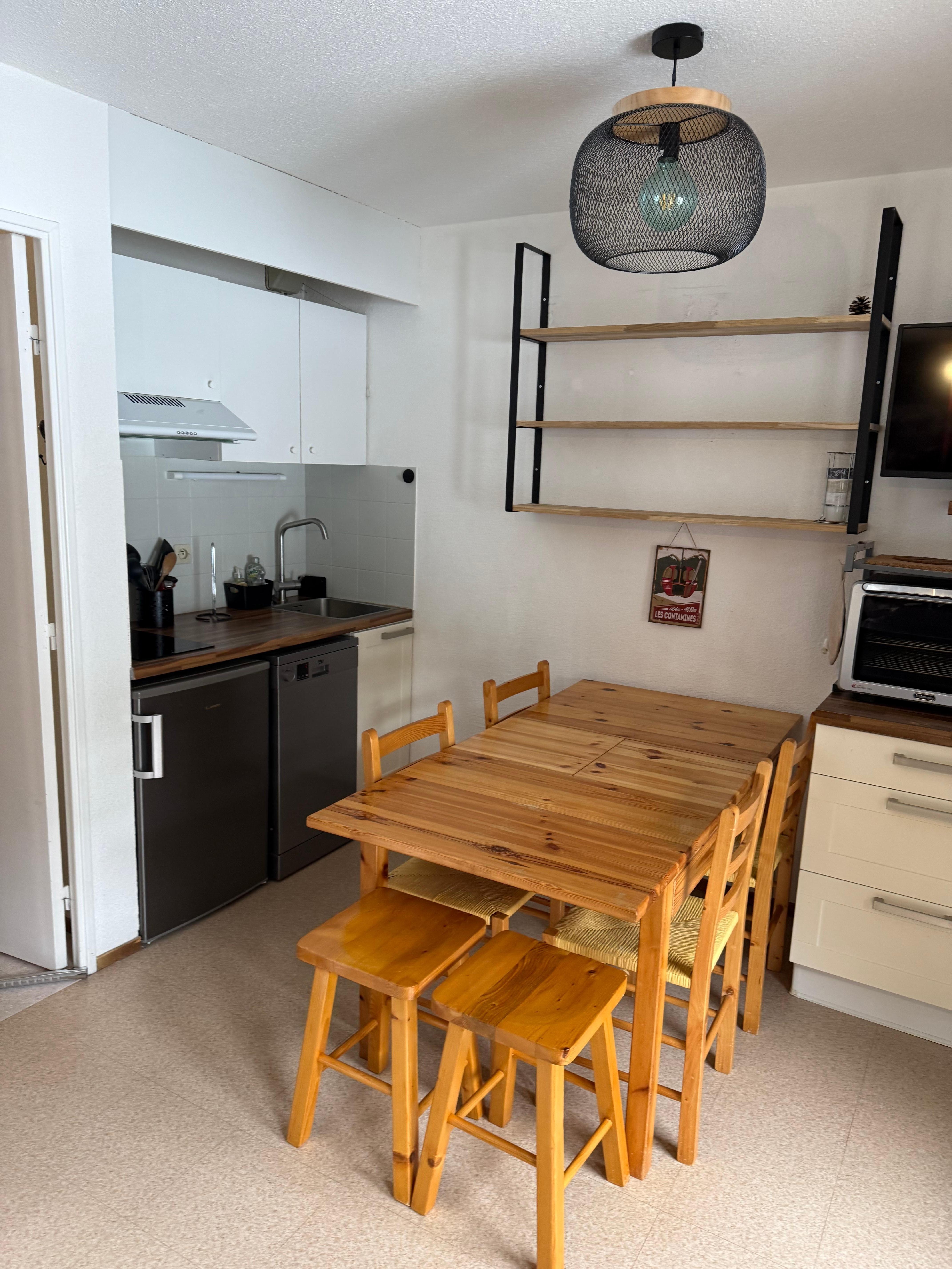 Appartement petit (pour 5) mais ne manquant pas de rangement. Idéalement situé pour accéder aux remontées mécaniques.Terrasse plein sud très agréable. Très bien équipé : appareil à raclette et à fondue, TV, grille pain, bouilloire, Nespresso... Ne manquait que le micro-ondes. Literie confortable. Propriétaire adorable.