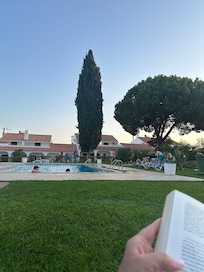 The flat inside was nice, clean and spacious with lots of storage and with on street parking. It was a well fitted out flat with a really big fridge freezer and plenty of pots and pans etc. The outdoor terrace area was large with 2 sun beds, a table and chairs and a small couch. It was within walking distance of a supermarket, some bars and restaurants and a 10-15 minute drive into Albufeira. What let the flat down from our visit was the pool area. It was not very well maintained. The flat seems to be part of a complex where most other apartments are owned/run by a company called Umbral holidays who I believe are in charge of the common areas. Rubbish lay beside the pool for days (which I ended up lifting) and the pool never seemed to be clean to the point that by our 4th day we were struggling to see the bottom of the pool and dissuaded the kids from going in it. And the pool beside the snack bar was even worse. We never went in it once due to how unclean it appeared. On the 5th day they attempted to clean the pool beside us by putting a hose into the pool for the entire day but this resulted in the pool overflowing and flooding the terrace area around the pool and the grass area around that continually for the whole day. The pool area put a bit of a dampener on our holiday.