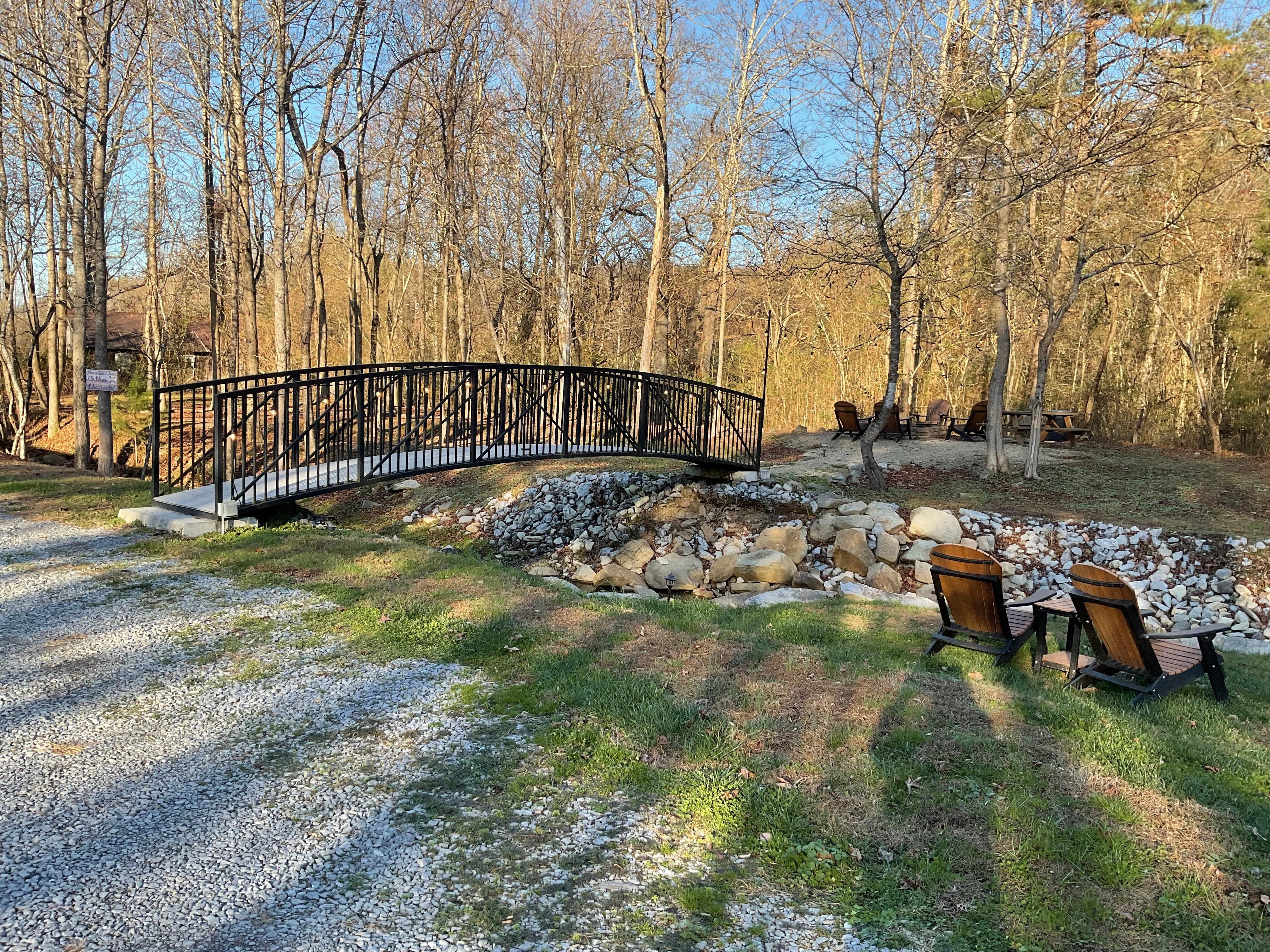 Outdoors, you can relax in the private hot tub, watch your favorite sports team on the large tv in the outdoor seating area, gather around the fire pit for s'mores under the stars, or meander the path to swing by the creek. You will also have access to the local catch-and-release fishing pond and SEASONAL pool. The cabin also boasts arcade games featuring Arcade Collections (Silver Strike Bowling, Putt Putt Golf, Bags, Lawn Darts), Mario Kart Driving Game, Multicade and Table top Video Game keeping kids young and old entertained for hours.