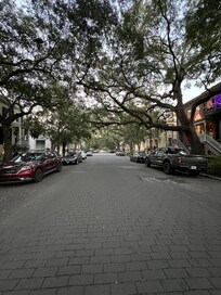 In Savannah many of the townhomes have 'garden level apartments' which is our way of saying ground floor. There are no stairs and unlike some garden apartments this one has high ceilings. There are 2 King bedrooms, and a pullout sofa in the living room. Very high end private laundry machines. Stocked kitchen (does not have dishwasher) has beautiful new refrigerator and gas stove. Optional $15 flat fee for use of one Private Off Street Parking Space Behind the Home!