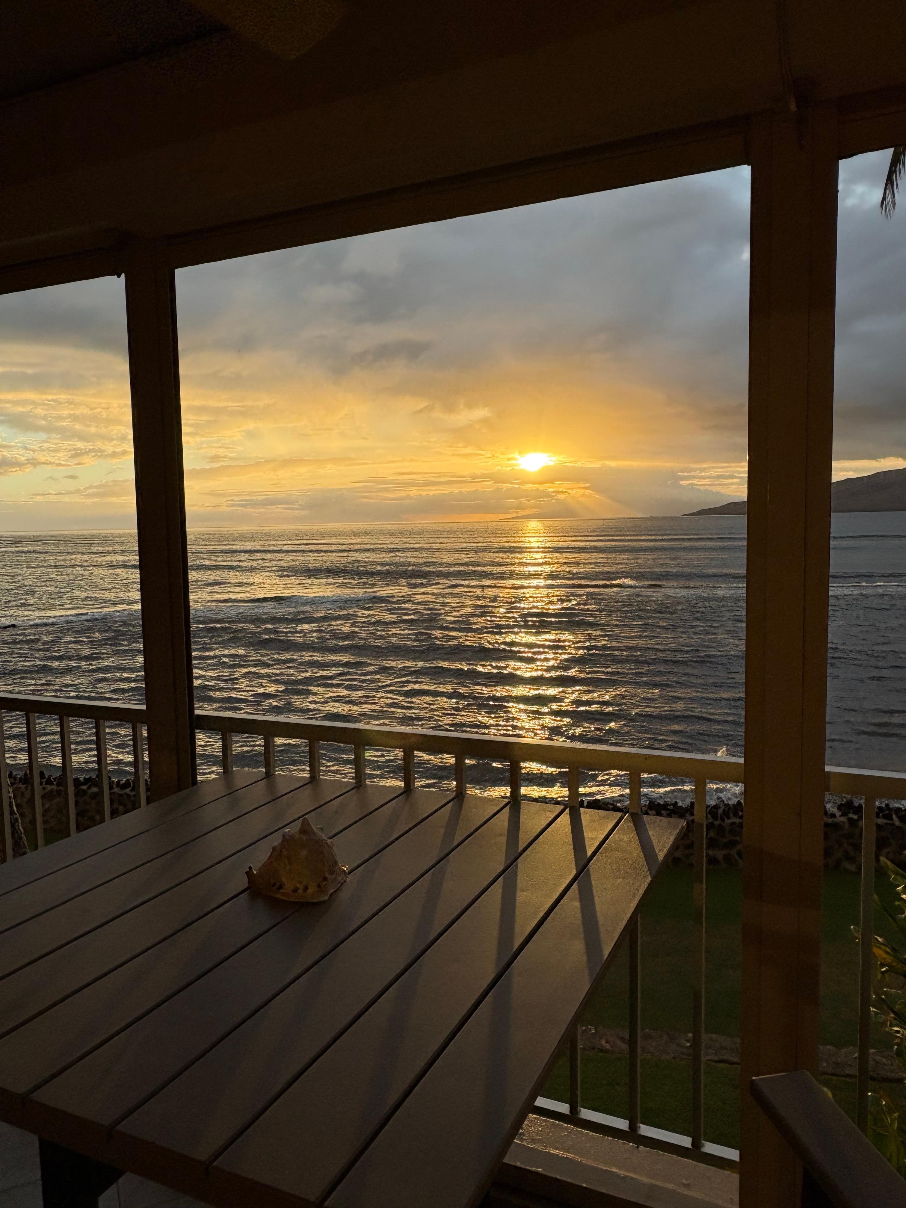 Absolute oceanfront with views of Molokini, Lanai, and Kahoolawe spread out in front of you. The beautifully landscaped grounds have abundant variety of native flowers and plants that will enhance your total island experience. Sunsets are absolutely incredible from your private lanai, and no two are are the same.