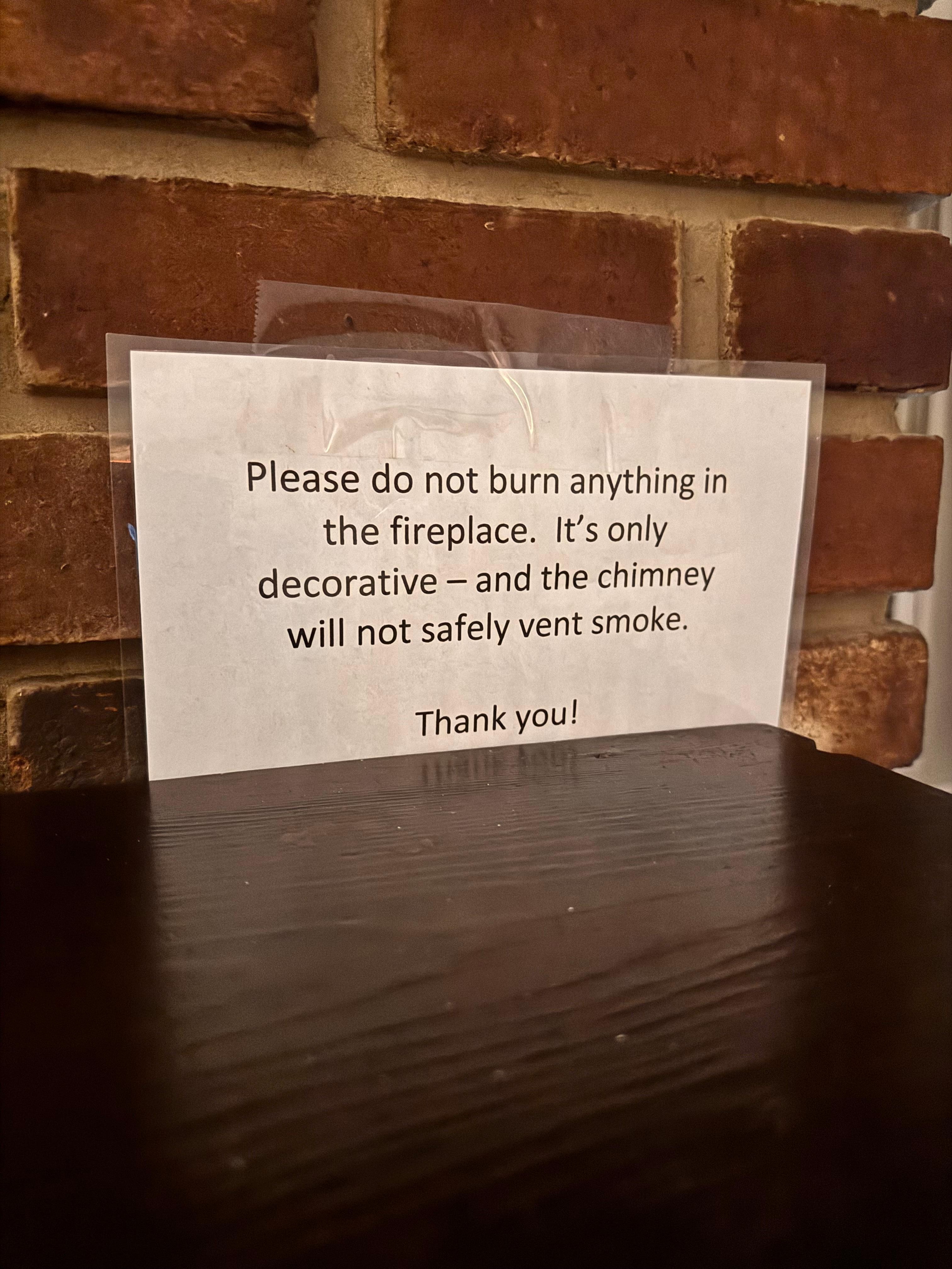 We have an indoor fireplace, but unfortunately it's not usable and is only decorative.
