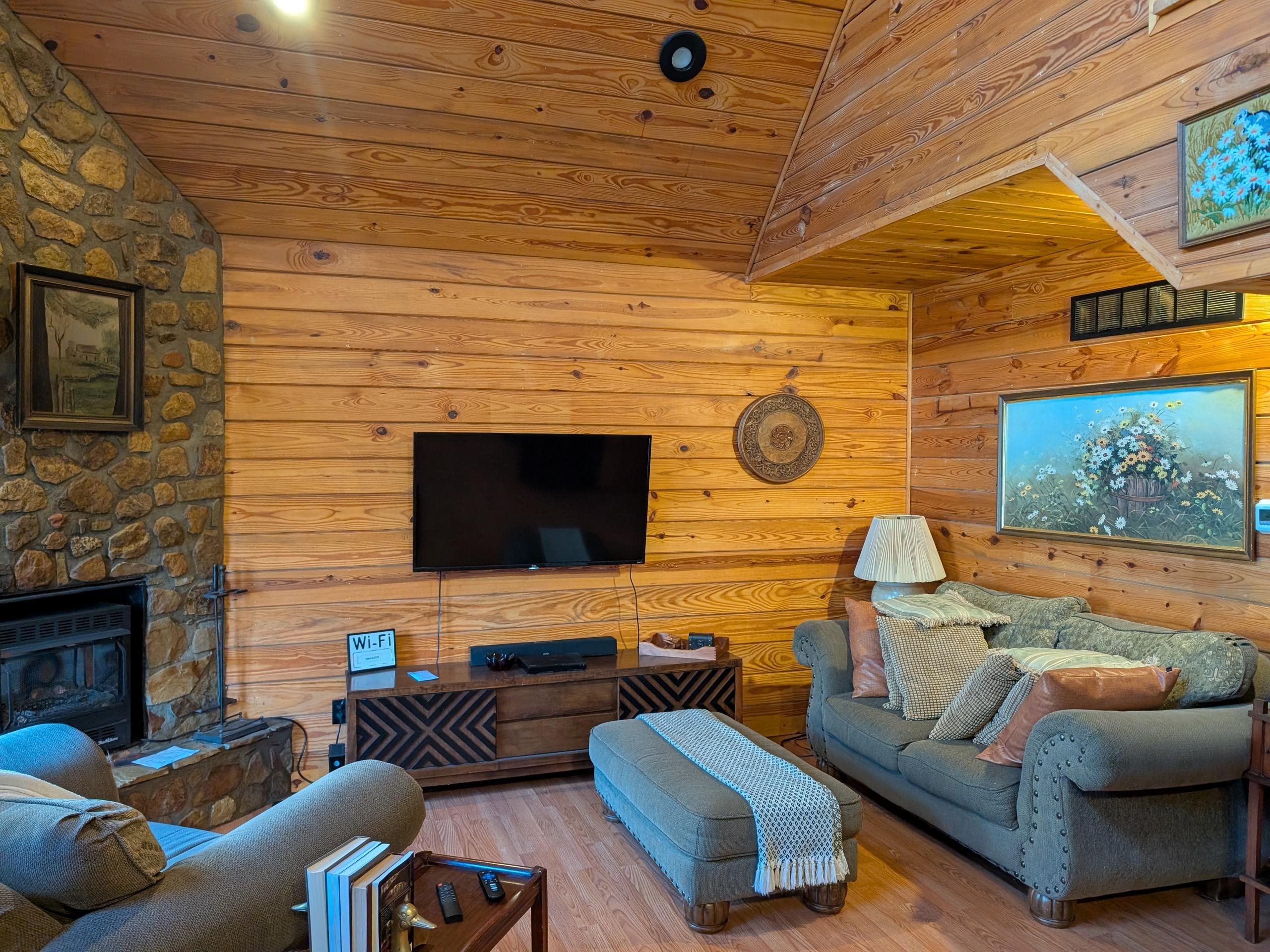 Wanderland cabin is a one bedroom with a loft. It has one king size bed and two queen size beds. Enjoy the gas log fire place, Jacuzzi, Wi-Fi, Roku internet TV and the hot tub on the large deck. There is good cell phone reception available. Sit on the porch while you grill out and take in nature. Front wheel drive required. It is set in the woods with a wooded view. There is a steep black top hill and a paved driveway. Front wheel drive required and 4 wheel drive recommended. Not motor cycle friendly. Maximum 1 pet. No pets are allowed to be unattended in the cabin unless crated.
