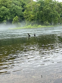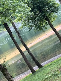 Only one step up from parking level, with a view of the lake from the screened in patio! Conveniently located near Branson shows and attractions, this two-bedroom, two-bathroom condo is a great option for a family or group of up to six. The common area includes a full kitchen with a breakfast nook, a dining area, a living room with cable TV/DVD and a queen-size sofa bed, and a screened balcony. Each bedroom offers cable TV, closet and/or drawer space, and a corresponding bathroom. The master bedroom features a king bed and balcony access. Enjoy an in-unit washer and dryer and free wireless internet.