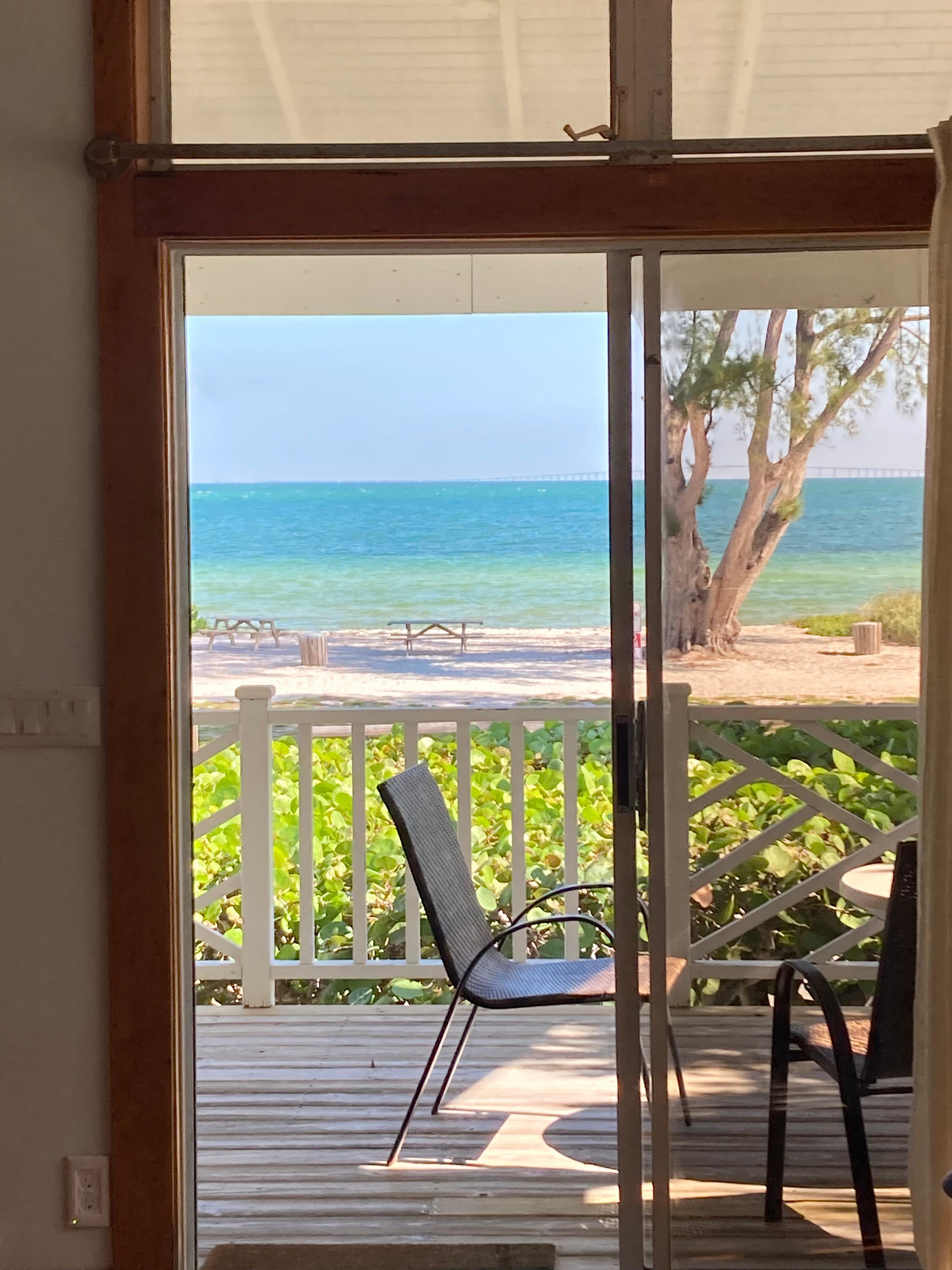 Two story elevated beach home with gorgeous water views, steps from park and two fishing piers. Enjoy meals in the separate dining room or on the balcony enjoying the breeze and dolphins in the bay. There are two bedrooms (king and queen) on the main floor and a loft (with twin beds) on the second floor. The master bedroom has an amazing water view. Guest bath on the main floor has a tub/shower combo. The upstairs area sleeps two, has its' own sitting area with a view, and a full bathroom with a jetted tub (note: no shower). This beautiful vacation home features a fully equipped kitchen, dining room, living room and flat screen TV, ROKU streaming device, DVD player, and wireless internet. There is a washer/dryer, outdoor covered hot/cold shower, and 2 gas grills; two car parking - one covered. We are steps to beaches and an easy walk to local restaurants, fishing on the bay or gulf waters, and shopping on Pine Ave. We are also close to trolley stops, which are free and will transport you the entire distance of Anna Maria Island. The gulf beaches are famous for our fabulous West Coast sunsets! We hope you take advantage of various sunset cruises, dolphin excursions, Egmont Island exploring and history, deep sea and inshore fishing guides, boat rentals and all Anna Maria Island has to offer for your perfect Island Vacation!