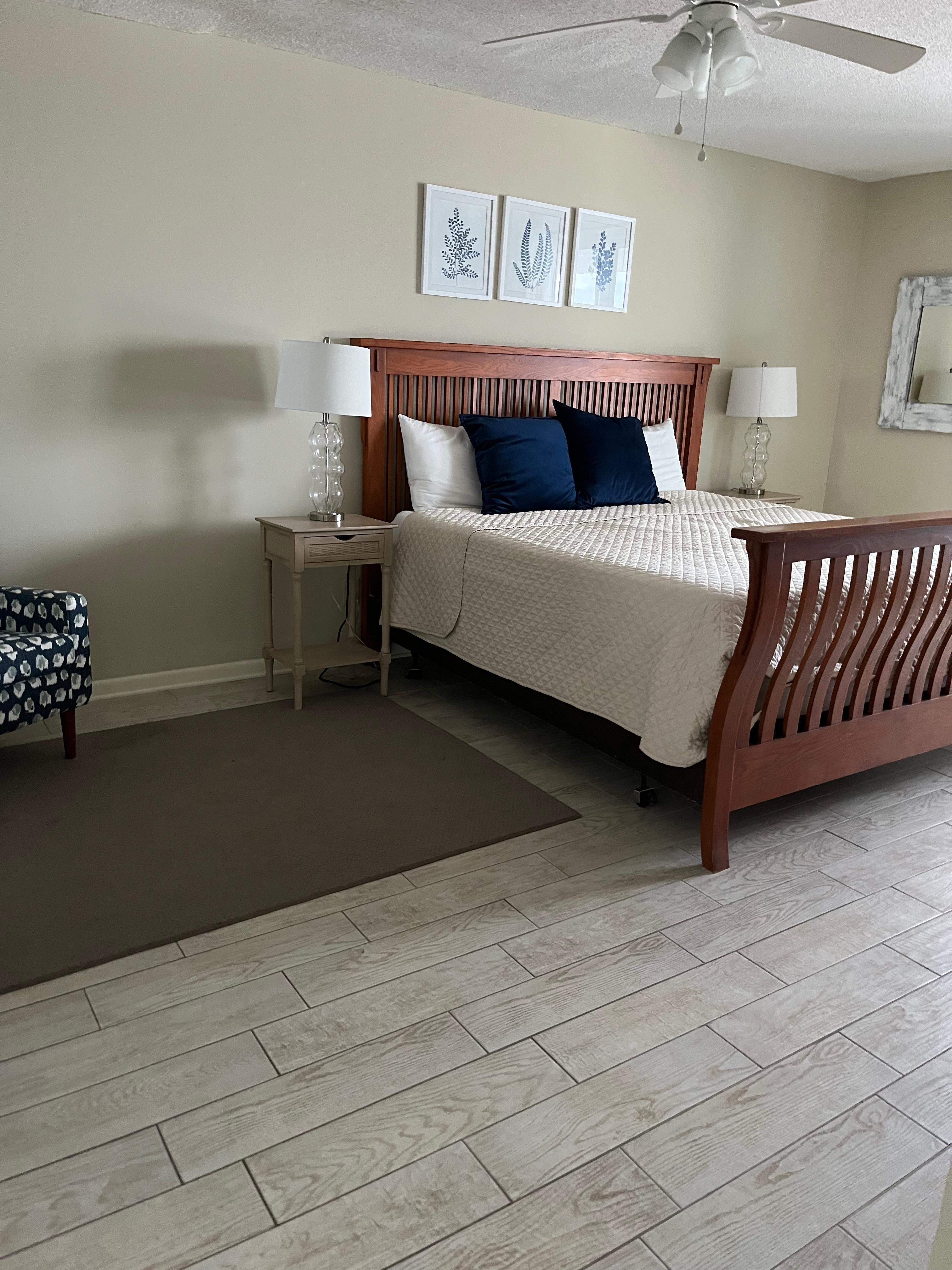 The master bedroom has a king bed, entrance to gulf front balcony and an en suite bathroom with a walk-in shower. The second bedroom hosts a queen bed and the third bedroom is perfect for the kids! In the third bedroom, there are two twin beds PLUS a set of double bunk beds! Lots of fun to be had in this room! There is a 2nd bathroom for those two guest rooms.