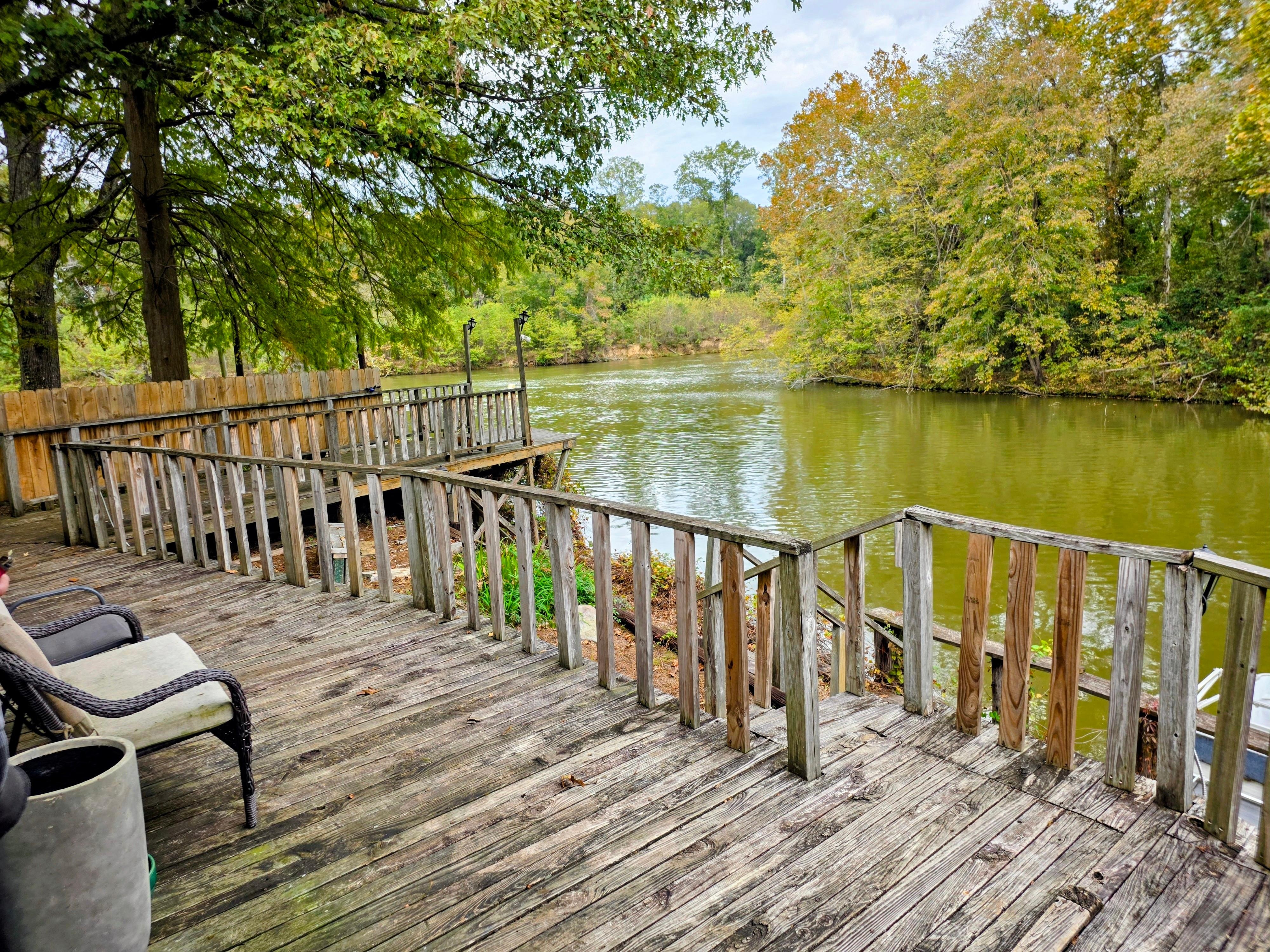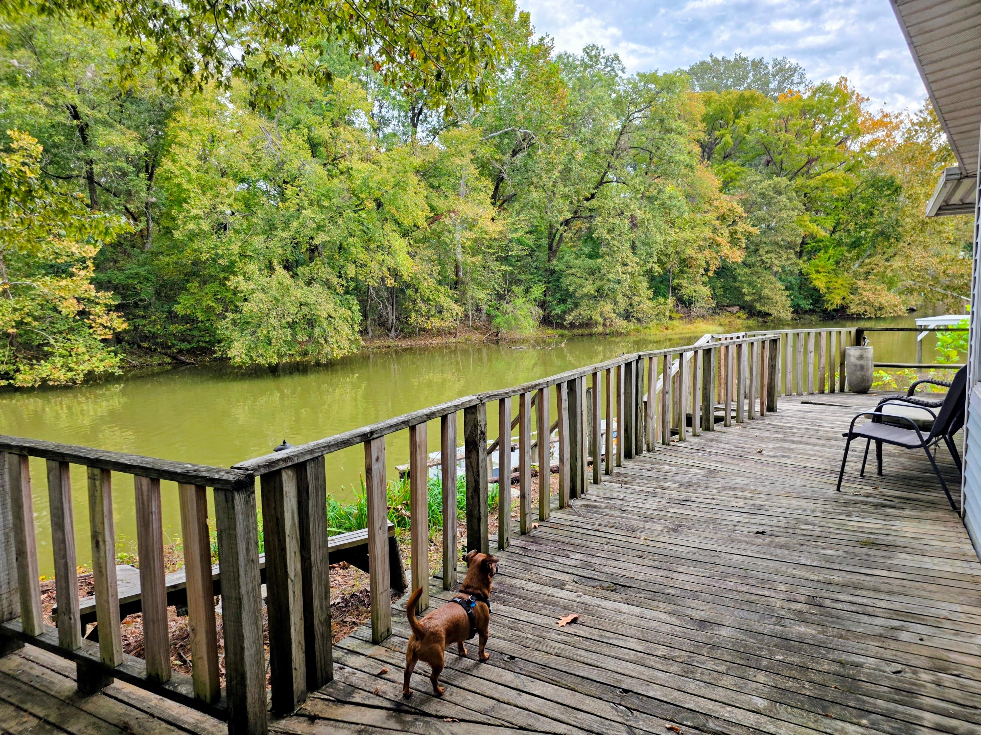 Check in was very easy. Owner very nice as well and quick to respond to my question. There is no central air, only two window units so in the heat of August the house was properly cooled minus the 2nd bedroom, hall bath which can get toasty. Pictures kind of confused me regarding sleeping arrangements, but one big bedroom has two queen beds and the second bedroom has one twin bed. There is a bunk bed off in the den area. Some food was in the fridge that wasn't ours, there is no dishwasher but the house is clean. Lots of bugs on the back porch with it being on the water but that is expected. We enjoyed the firepit, and riding the few minutes to sardis dam. Didn't talk to neighbors, but everything was quiet. Not many restaurants around that we could find. Said hello to the chickens in the coop out front. It was a nice stay.