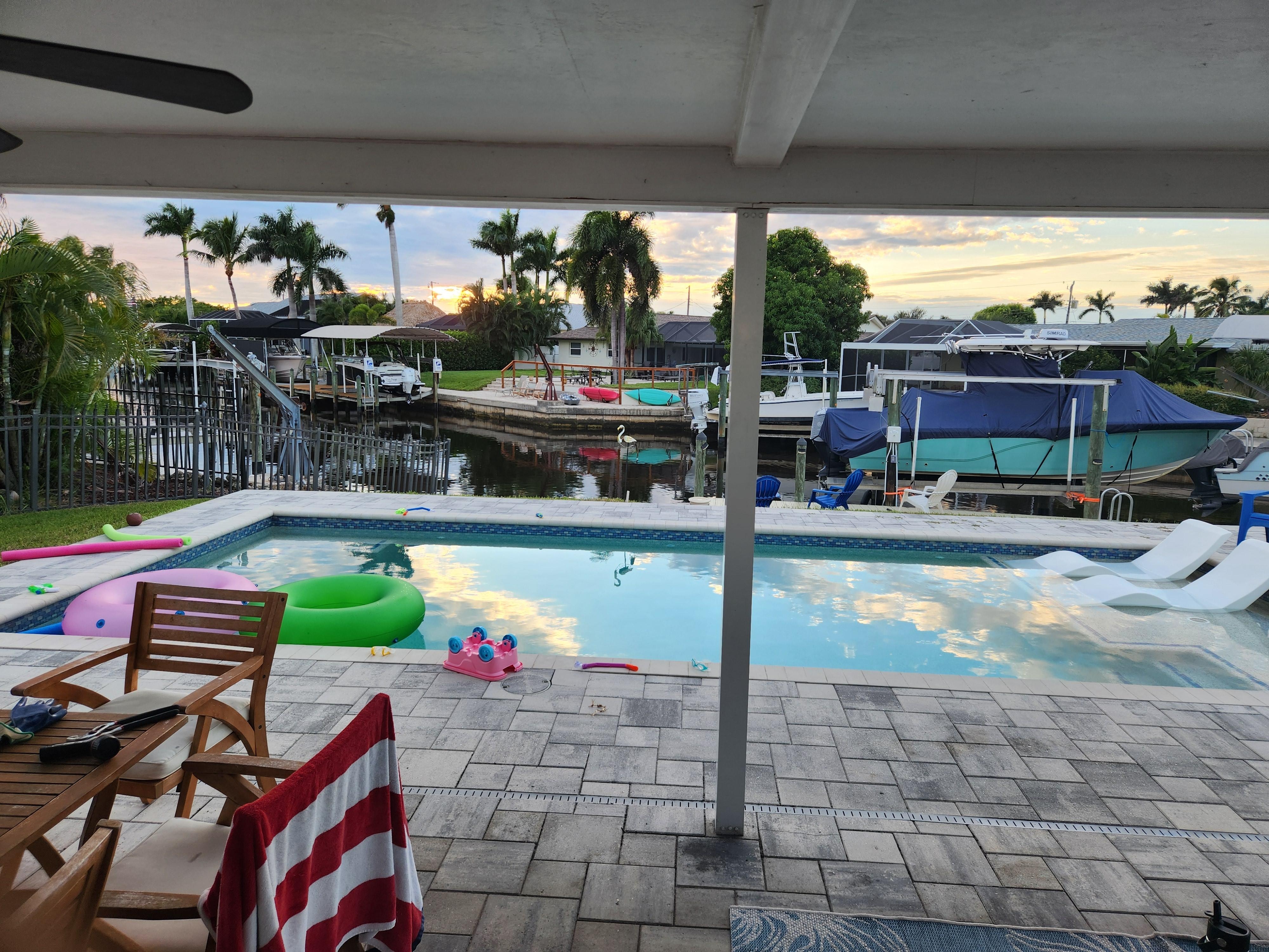 Private waterfront home near the mouth of the Caloosahatchee river. Great fishing for snapper, snook, sheepshead etc right from the backyard. If you prefer to look and not catch there are frequent dolphin and manatee sightings as well! You can kayak out to see the beautiful Ft. Myers sunsets or just be a beach bum as this property has it all! Conveniently located near shopping and restaurants but still only a 5 minute drive to the beach! Home sleeps 8 with 2 queen beds in bedrooms, a queen pullout couch, and a bunk room. House has brand new floors, remodeled bathrooms, and new open air patio and saltwater pool with tanning deck. 5minutes to Bunche beach, 12 to Ft. Myers beach and 20 to sanibel!
