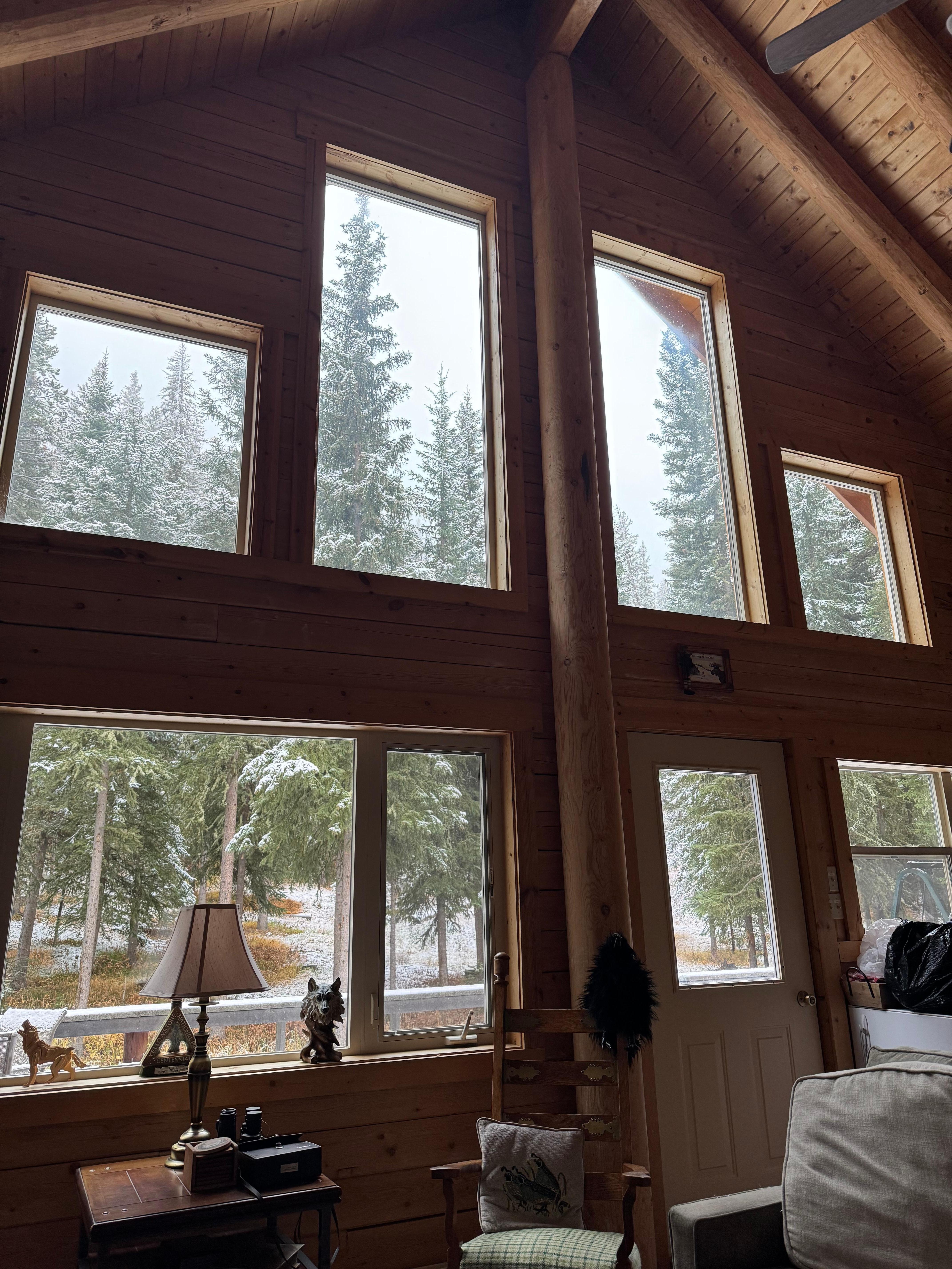 Grey Wolf Cabin is located on 1.3 wooded acres, and backs onto the Absaroka Wilderness. Its location is 1/2 mile off the main road leading to Yellowstone, so views in all directions are of pine trees and mountains. The cabin's main floor has a full kitchen, dining room table that seats up to eight guests, and a large comfortable living room with TV, DVD, stereo system, and gas stove. The master bedroom with a queen bed and en suite bathroom are also on the main floor, along with a second guest bathroom and utility room with washer and dryer. The large loft has two queen beds, a reading nook with a couch and game table. Additionally, the loft opens onto a private balcony with beautiful views of forest. What makes this cabin special is the large deck on the south side of the cabin for guests to enjoy. There is a large library of books, maps and DVD's pertaining to the flora and fauna of Yellowstone.