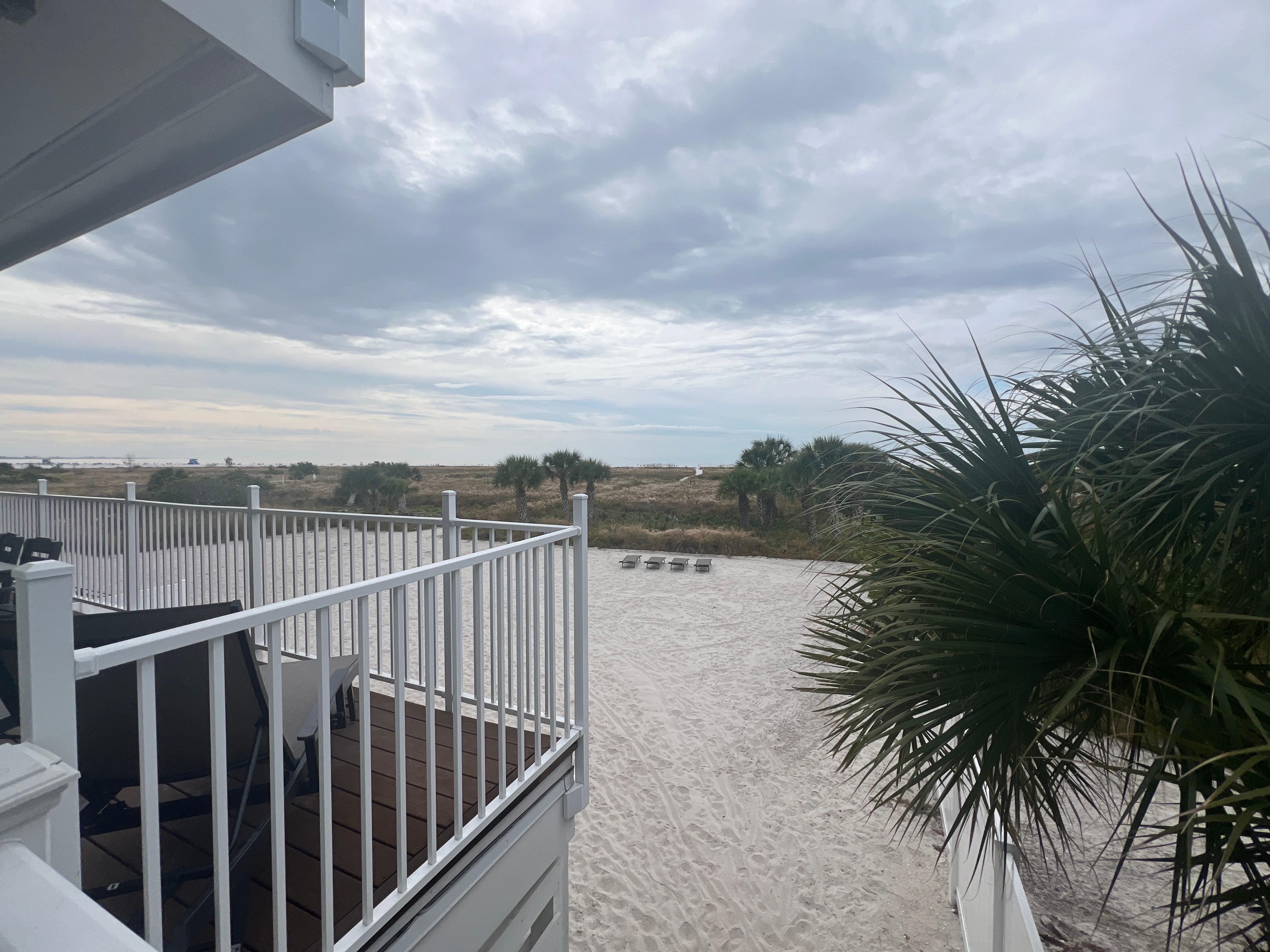 This 2-bedroom, 3-bathroom unit is situated in a freestanding building. This privately-owned building consists of two freestanding buildings with three units on the whole property. It is the back unit in the building and has two wonderful decks with views of the beach and Gulf of Mexico. One deck is off of the dining room and the second balcony is off of the loft area. In the photo, it is the smaller white deck on the left (north) side of the building. (It is not the larger deck). Please check out the photos and you will see a green arrow pointing to the deck for this unit.