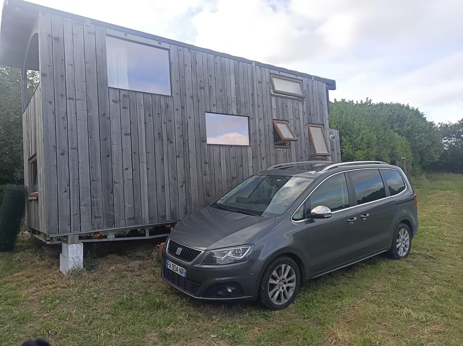 The wooden tiny house is very luminous. It can accommodate up to 4 people.