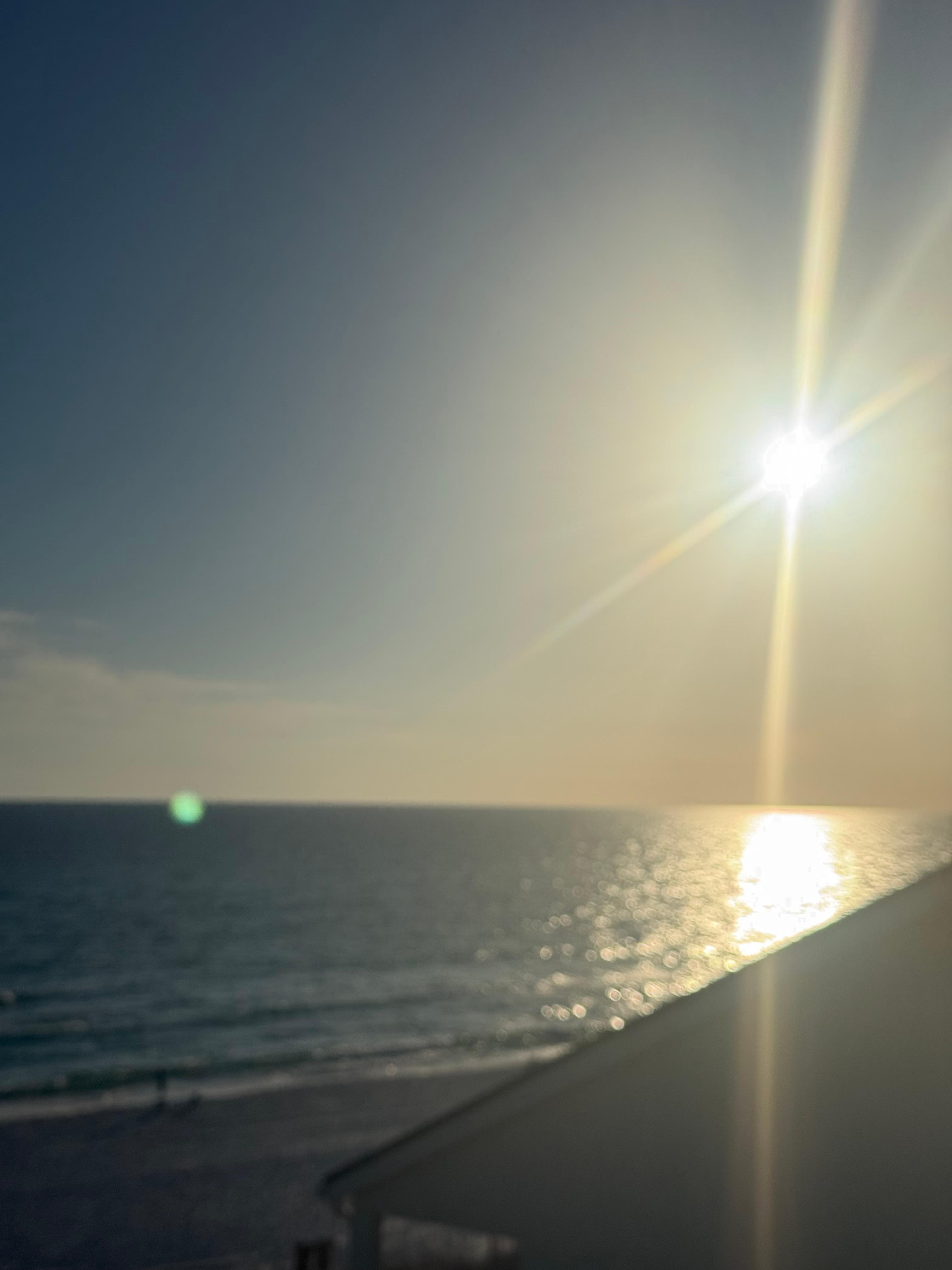 We were surprised to find such a light and airy unit. Since it is a top floor unit on the end, the skylights and side windows made it so pleasant. The balcony was quite large with a great view of the ocean. We weren't sure how it would be to stay in a condo instead of a house on the ocean, but with the beach access being so easy, it was great. We did rent beach chairs which helped. The beach was not at all crowded either. The food nearby was outstanding! Crazy good ice cream at Pecan Jacks, the Old Fish House never disappoints, and the Perfect Pig was a wonderful surprise of deliciousness.
