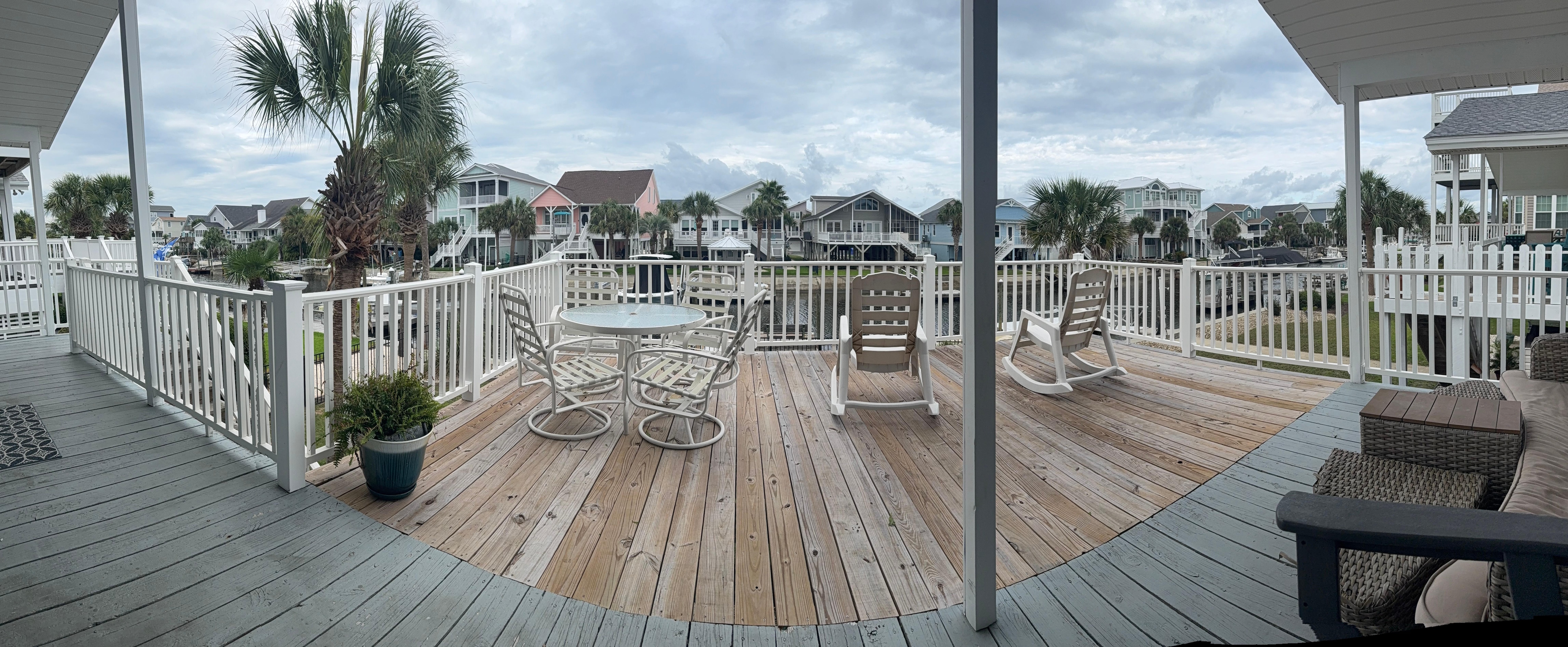 The large back deck provides another outdoor living space overlooking the canal. The canal features a floating dock to tie up your boat with easy access to the ICW. Enjoy swimming, paddle boarding(included), or kayaking in the canal or head down to the beach and enjoy the ocean breeze!