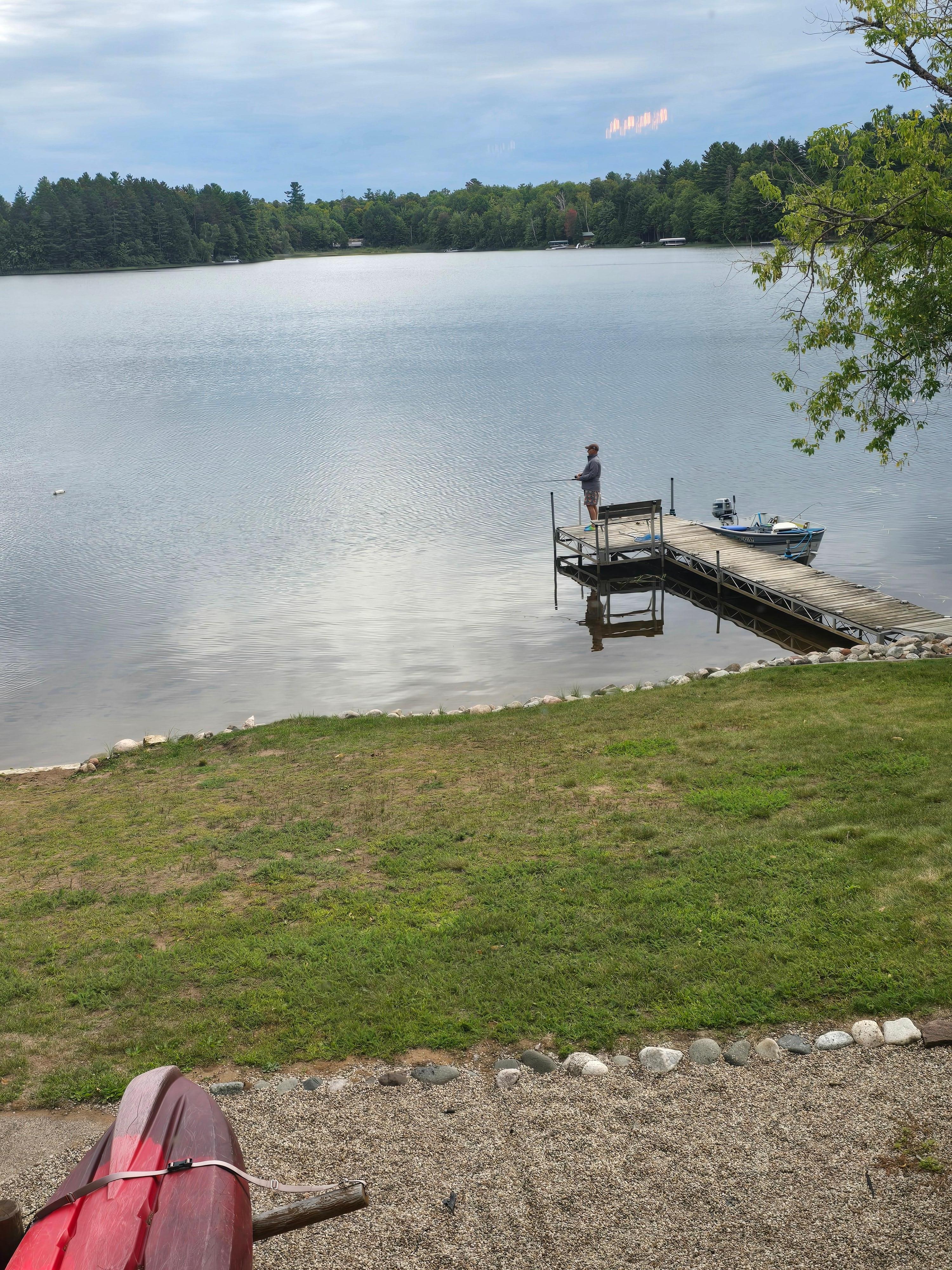 Grand Portage Lake is 148 acres in size with a max depth of 33 feet. Visitors have access to the lake from a public boat landing. Fish include Musky, Panfish, Largemouth Bass, Smallmouth Bass, Northern Pike and Walleye. The lake's water is moderately clear. Our 301 ft. of frontage has a gradual approach and sand bottom. There is a private dock for use as well. The lake is known for fishing, jet skiing, kayaking, canoeing, tubing, and water skiing.