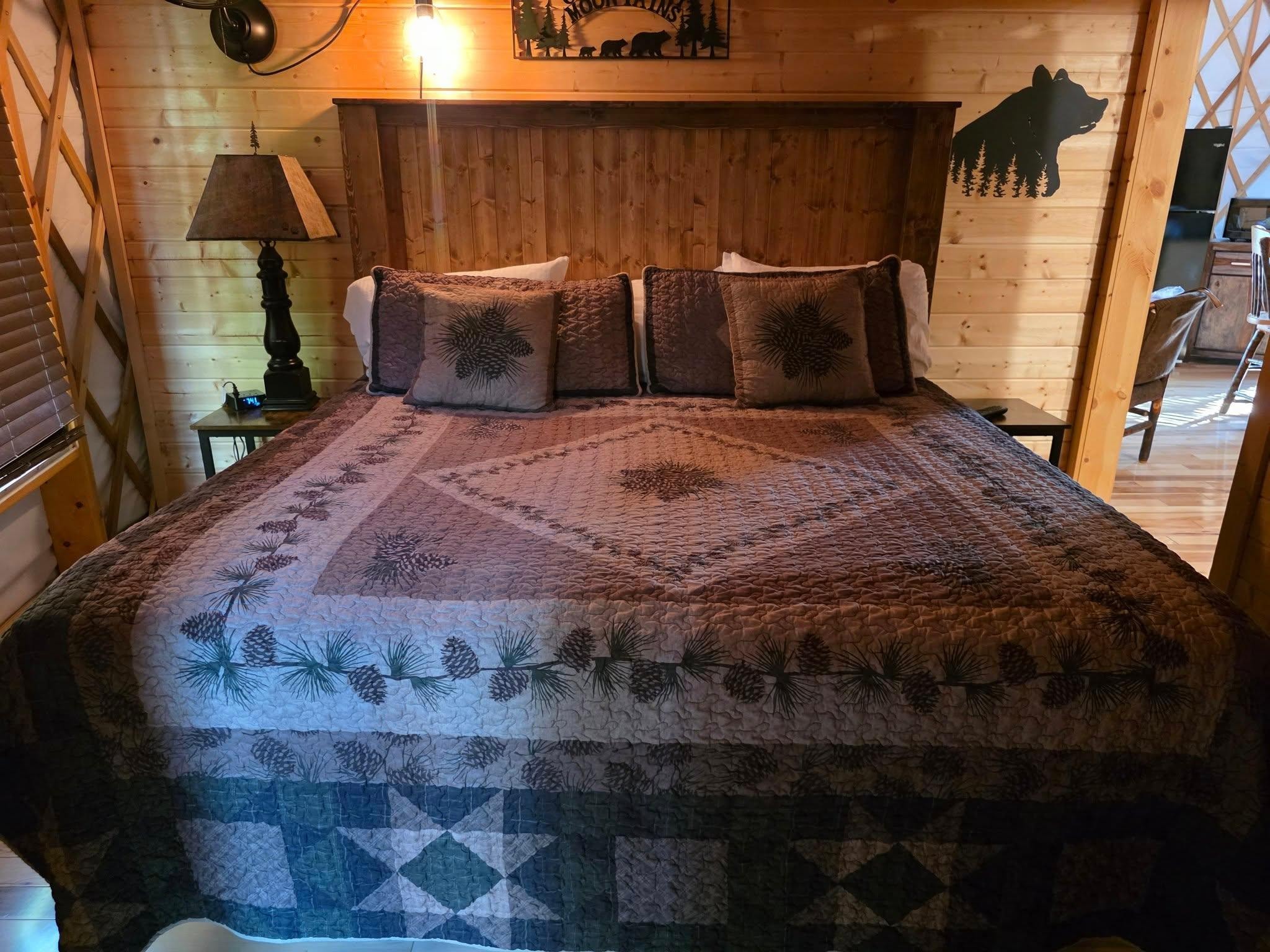 We loved the Yurt and have already shared info with our friends! The decor was so nice, bed was very comfortable. The Yurt was very clean and the view from the balcony was beautiful! We loved seeing the leaves that were changing colors. We were able to use the hot tub and it was so relaxing after a long day of touring the national park and taking in the Lumberjack Feud! Would definitely recommend this property to anyone that is visiting the area.