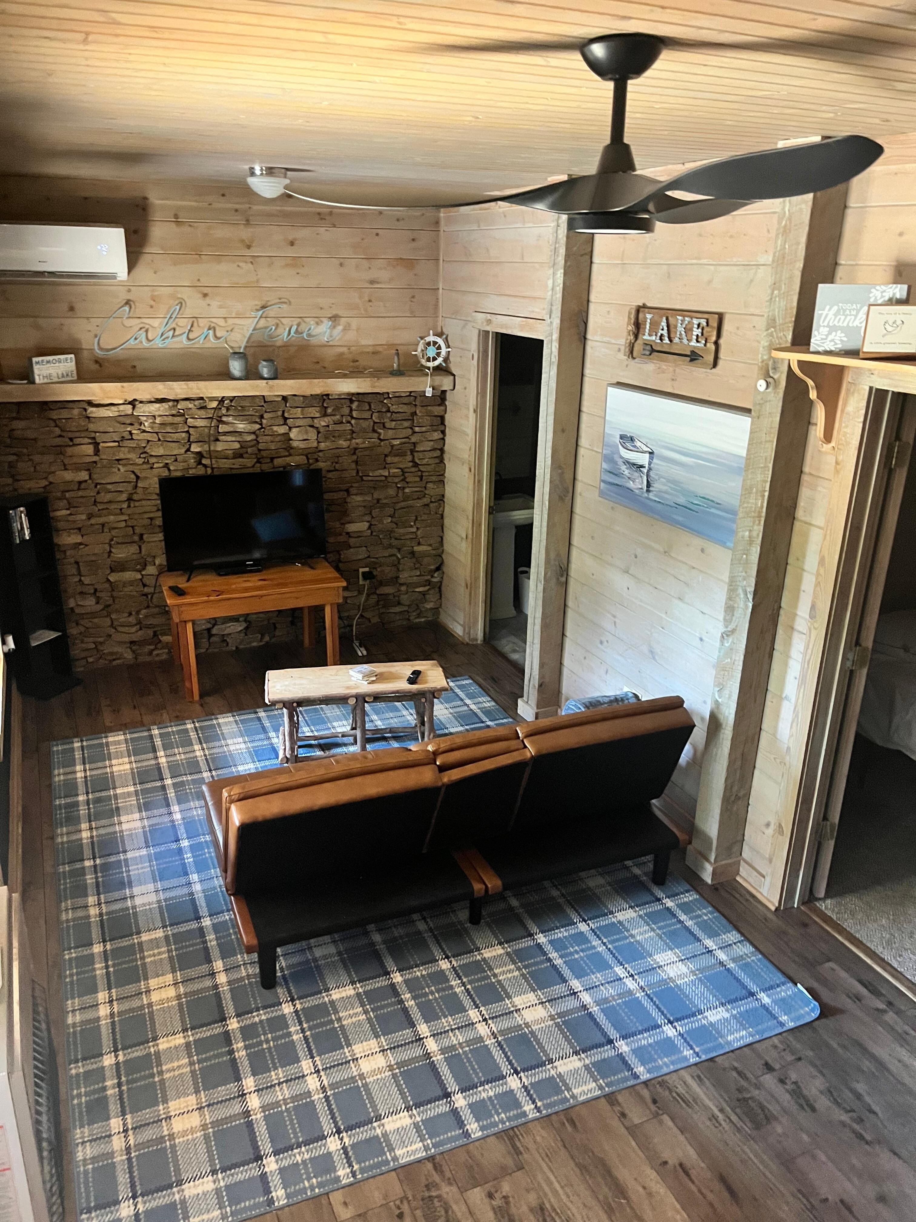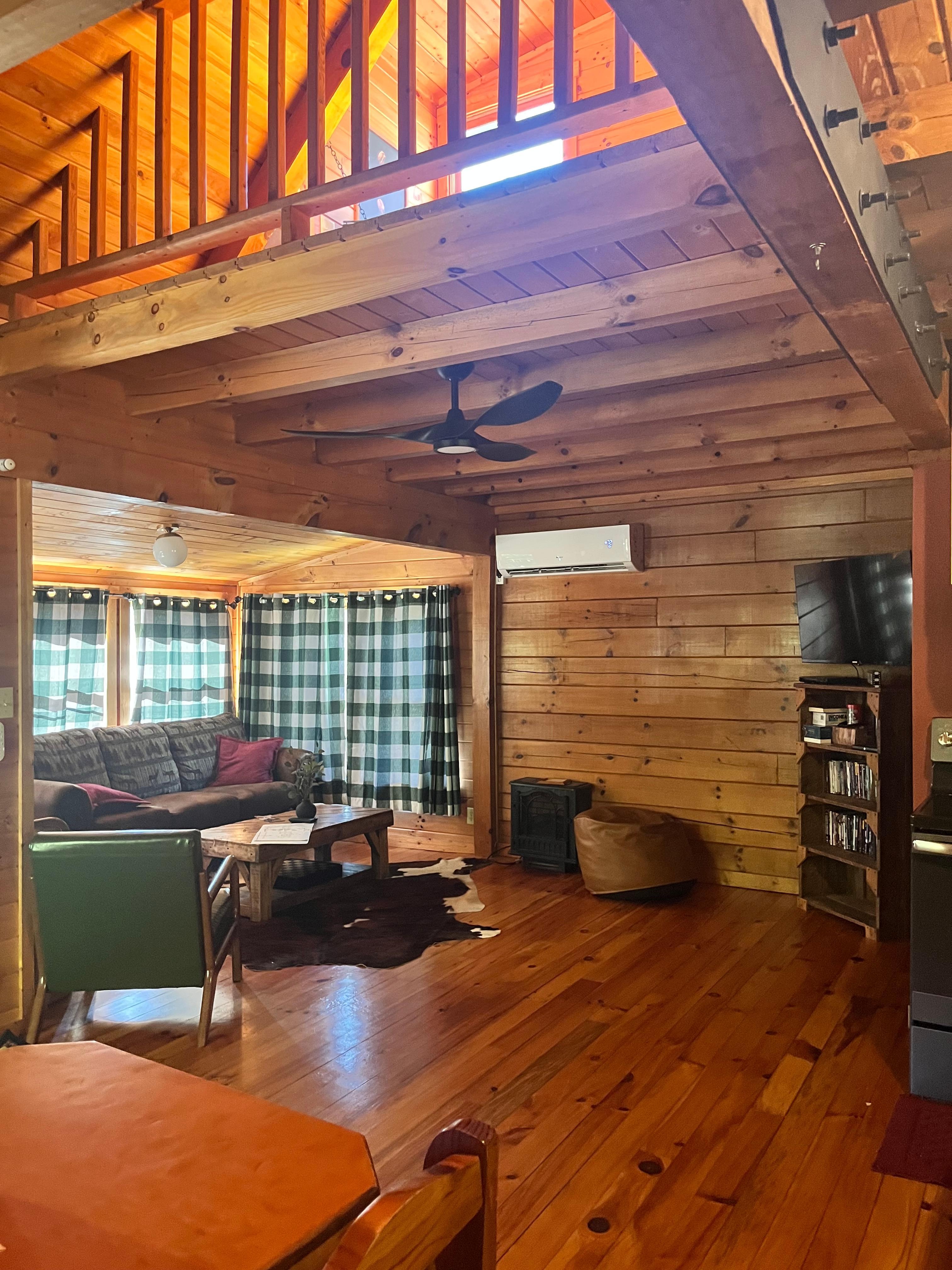 The road to the cabin is narrow and rocky, be prepared for that. We were unsure where to park due to the closeness of the house next door (50 ft away).