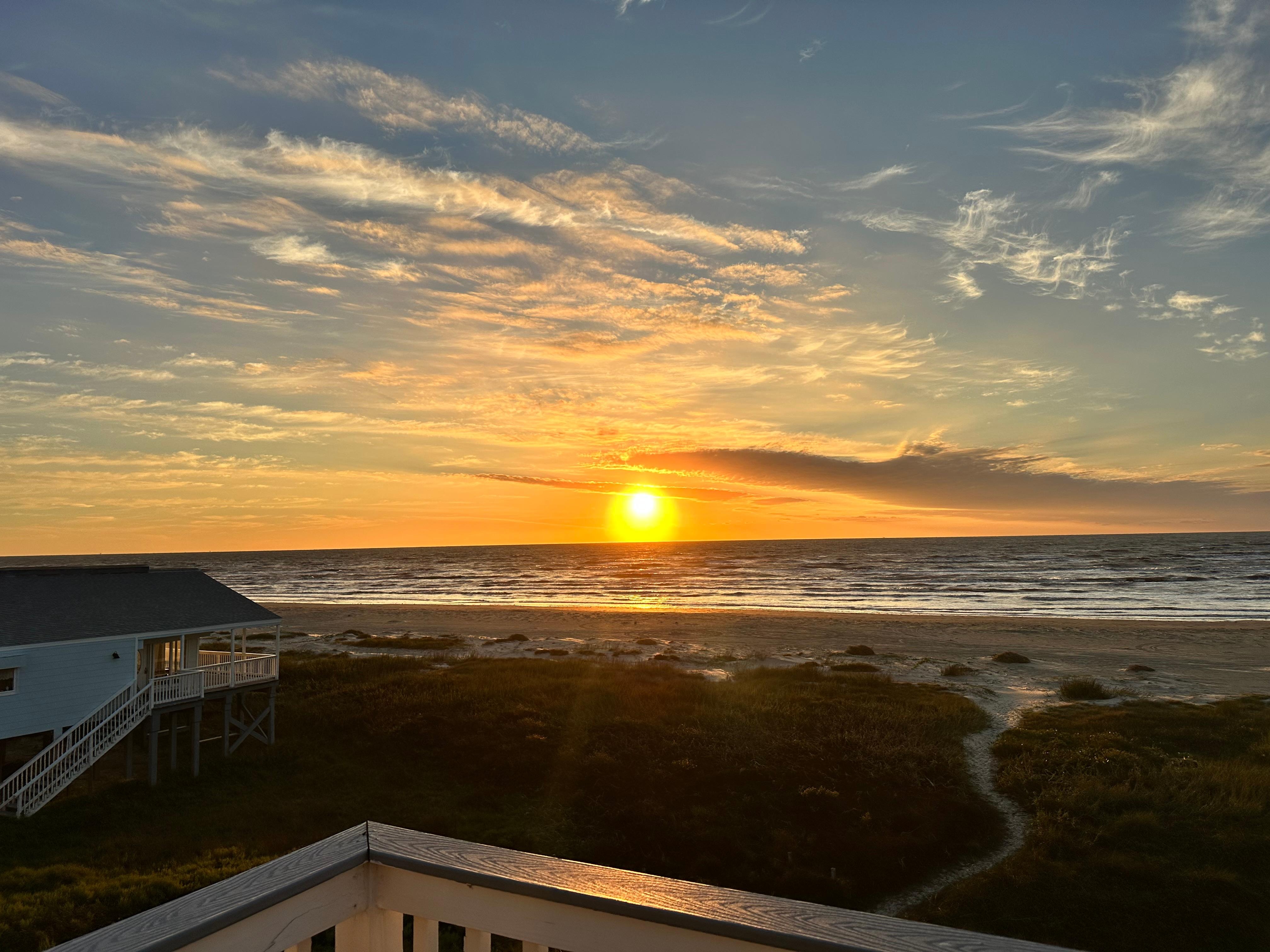 You can not beat this wide open view! Enjoy everything the sunrise has to offer from the expansive two story deck and wall of windows facing the Gulf.