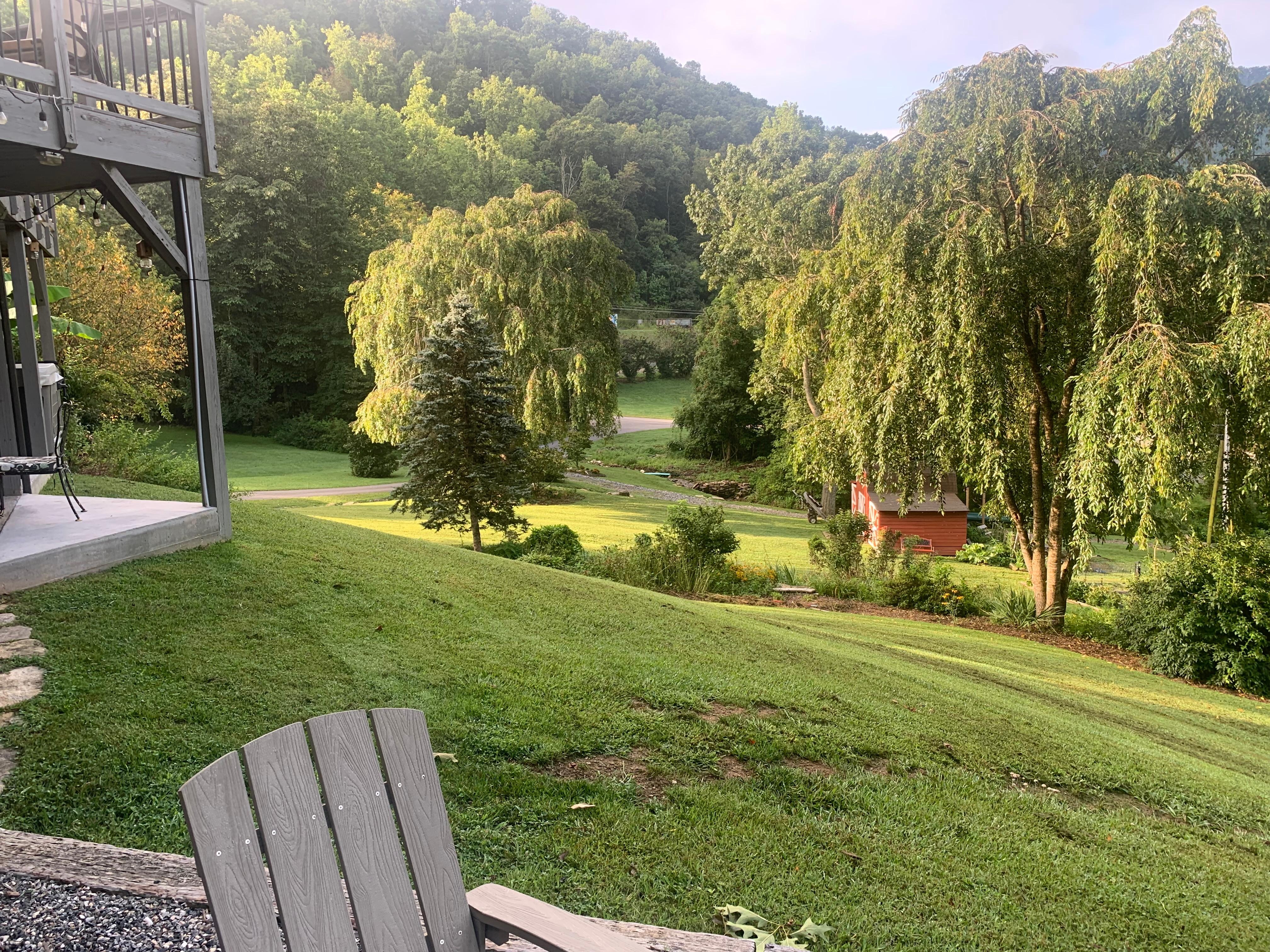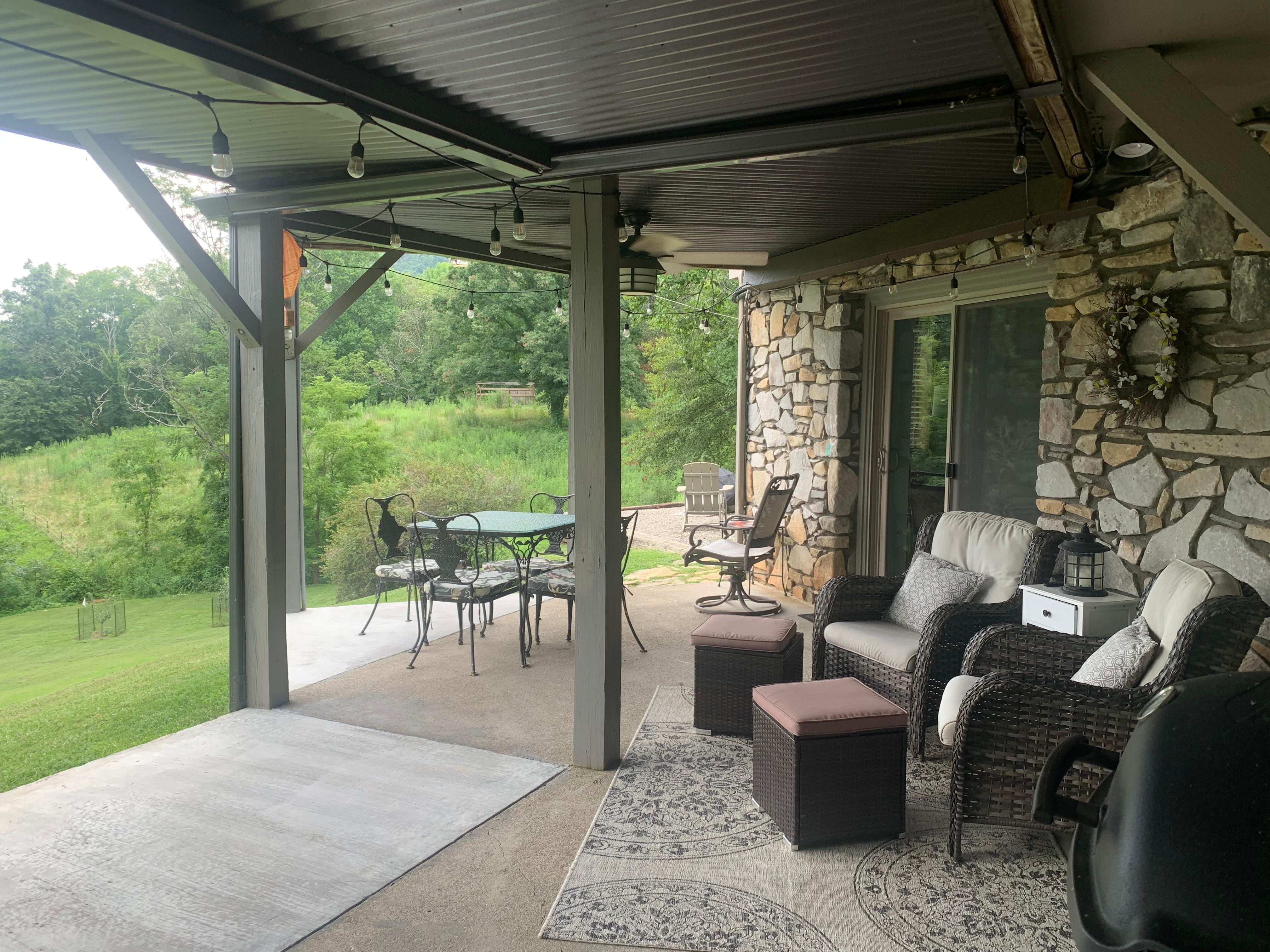 The patio is a beautiful peaceful place to enjoy a cup of coffee or a glass of wine and soak in the mountain air in the hot tub. Deer come to side yard to feed at dusk. It is weather protected with hammock, table/chairs, cushioned chairs, Weber grill, fire pit and outdoor lighting. Side yard has a "chipping golf range" (wedges and limited balls provided).
