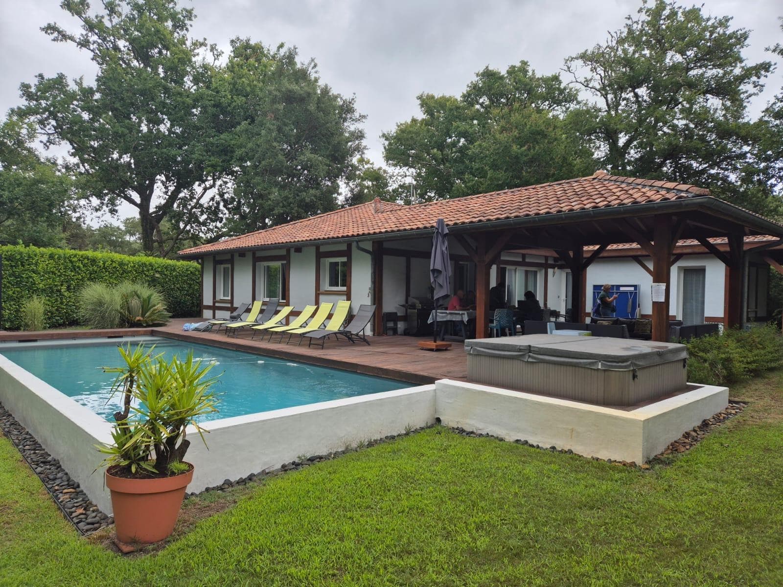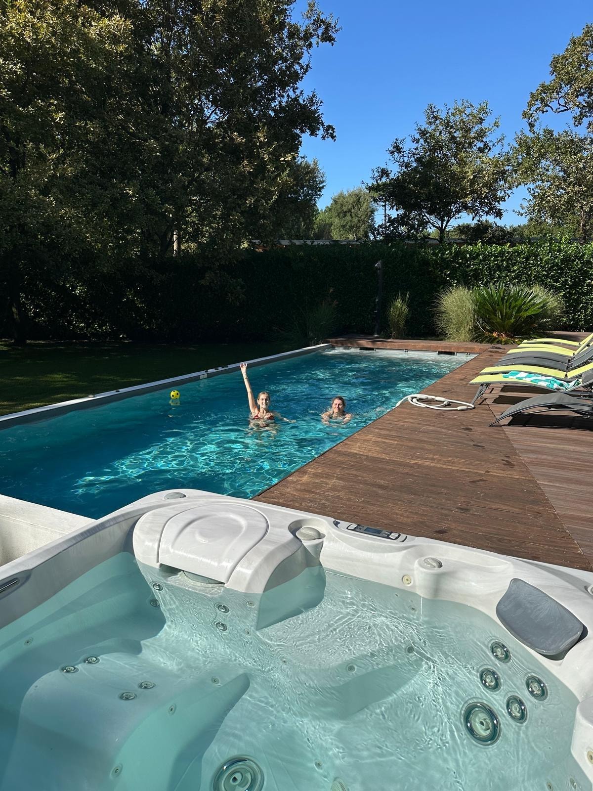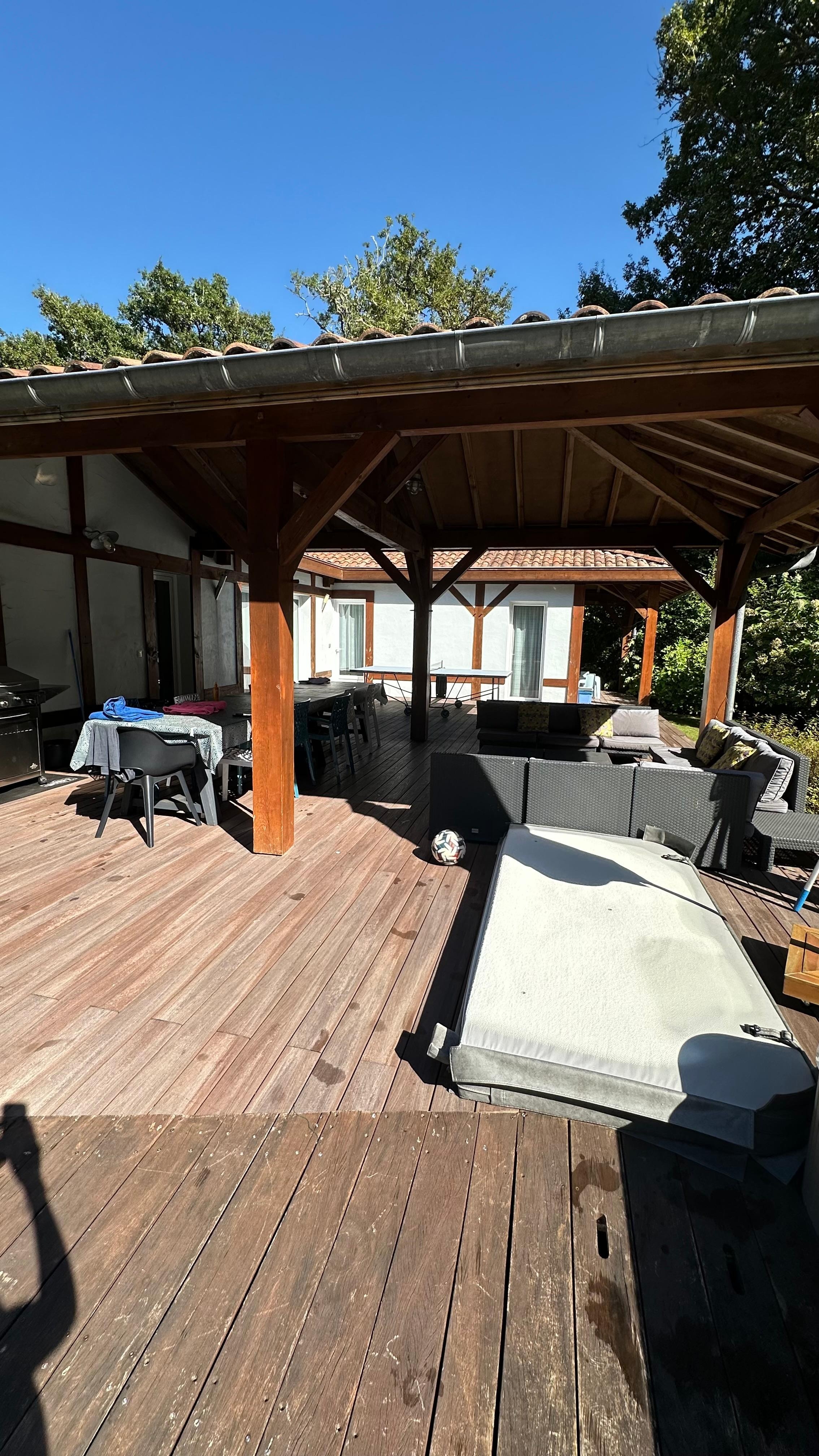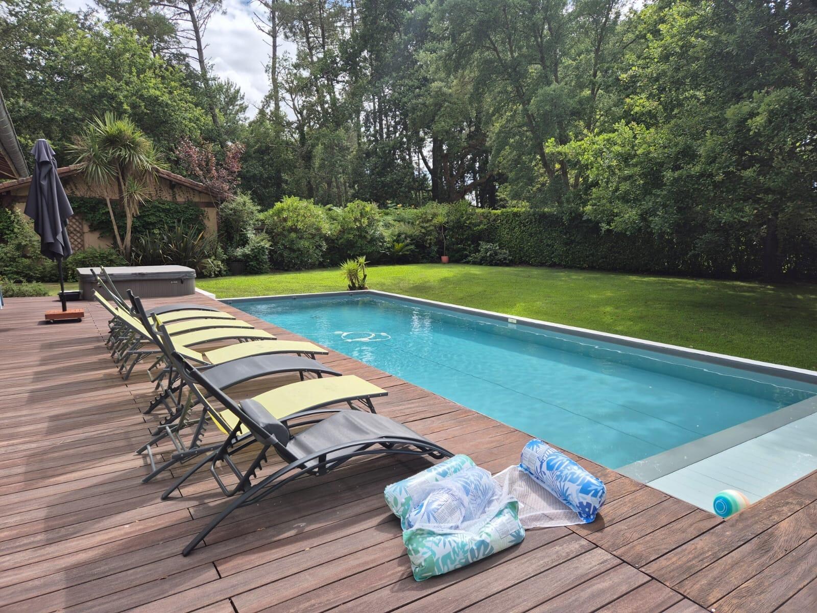 maison aux équipements parfaits, bonheur de plonger dans sa piscine privée idéalement chauffée, délicieux jacuzzi le soir, jardin magnifiquement entretenu, terrasse couverte idéale par forte chaleur, plancha, table de ping pong, jeux enfants, dvd, grandes chambres à la literie impeccable, très grand salon...le tout à 5 min en voiture des plages....
