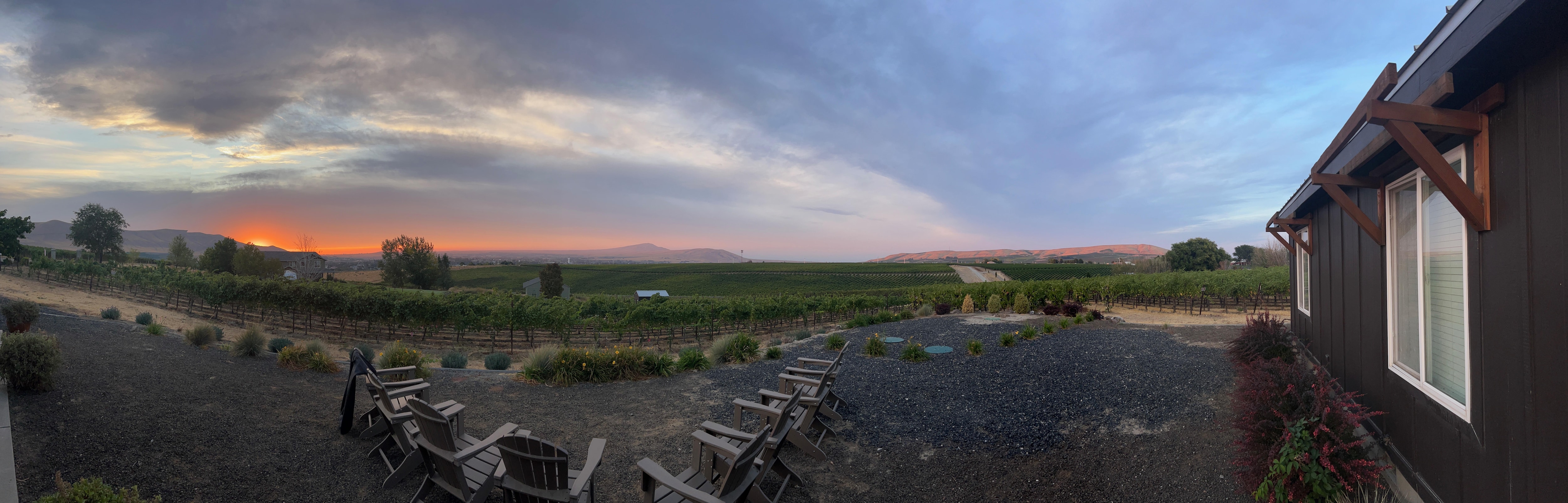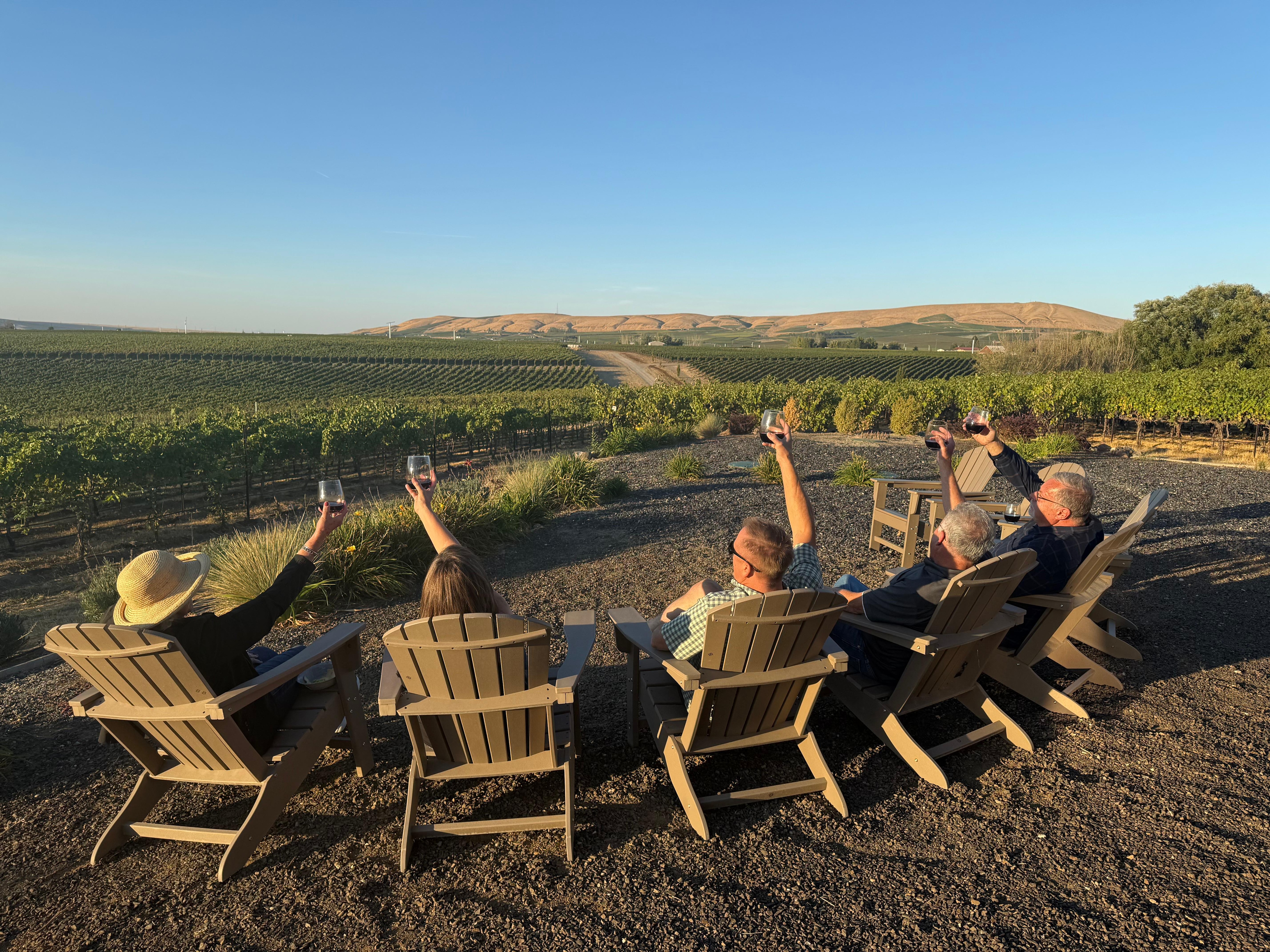 Owners Tim Gamble and Teresa Spellman Gamble are lifelong Washington residents and are proud to own two special Red Mountain vineyards and the Retreat home. The vineyard where the Retreat home is situated is a young but established European-inspired vineyard of just under 5 acres that produces 15-20 tons of quality fruit each year: Cabernet Sauvignon, Cabernet Franc, Petite Sirah, Petit Verdot, and Mourvedre have been harvested from this vineyard, and new varietal grafting is currently taking place. The second Tinte Cellars vineyard is located in the heart of Red Mountain (former E&E Shaw Vineyards), directly east of Ciel du Cheval. That vineyard is planted with just over 12 acres of Cabernet Sauvignon, Merlot, and Cabernet Franc.