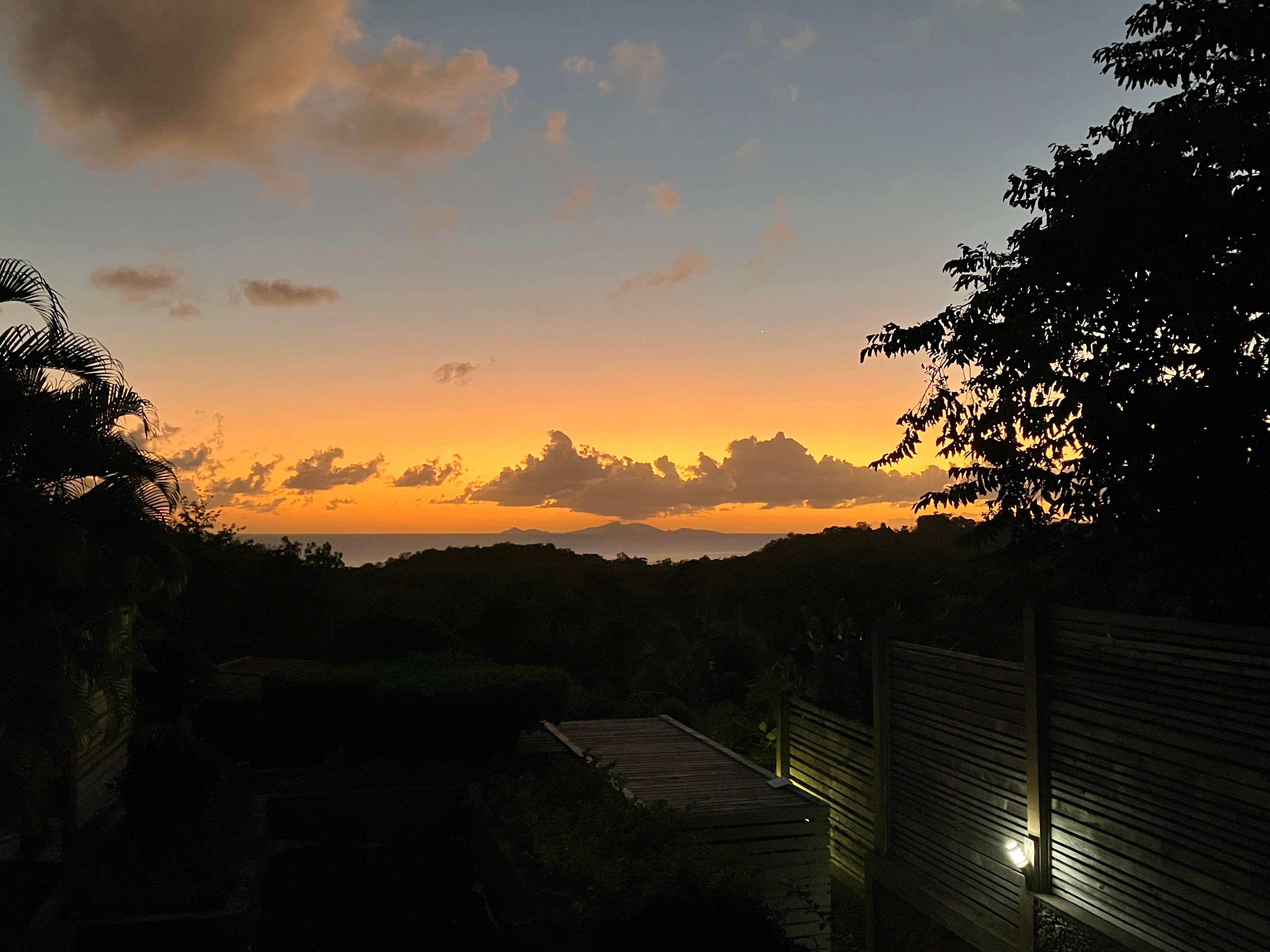 Très bel endroit, un jardin bien fleuri et bien planté, une vue magnifique sur les Saintes avec des couchers de soleil plus beaux les uns que les autres.C’est la zénitude complète, tout est fait pour le repos et se ressourcer.