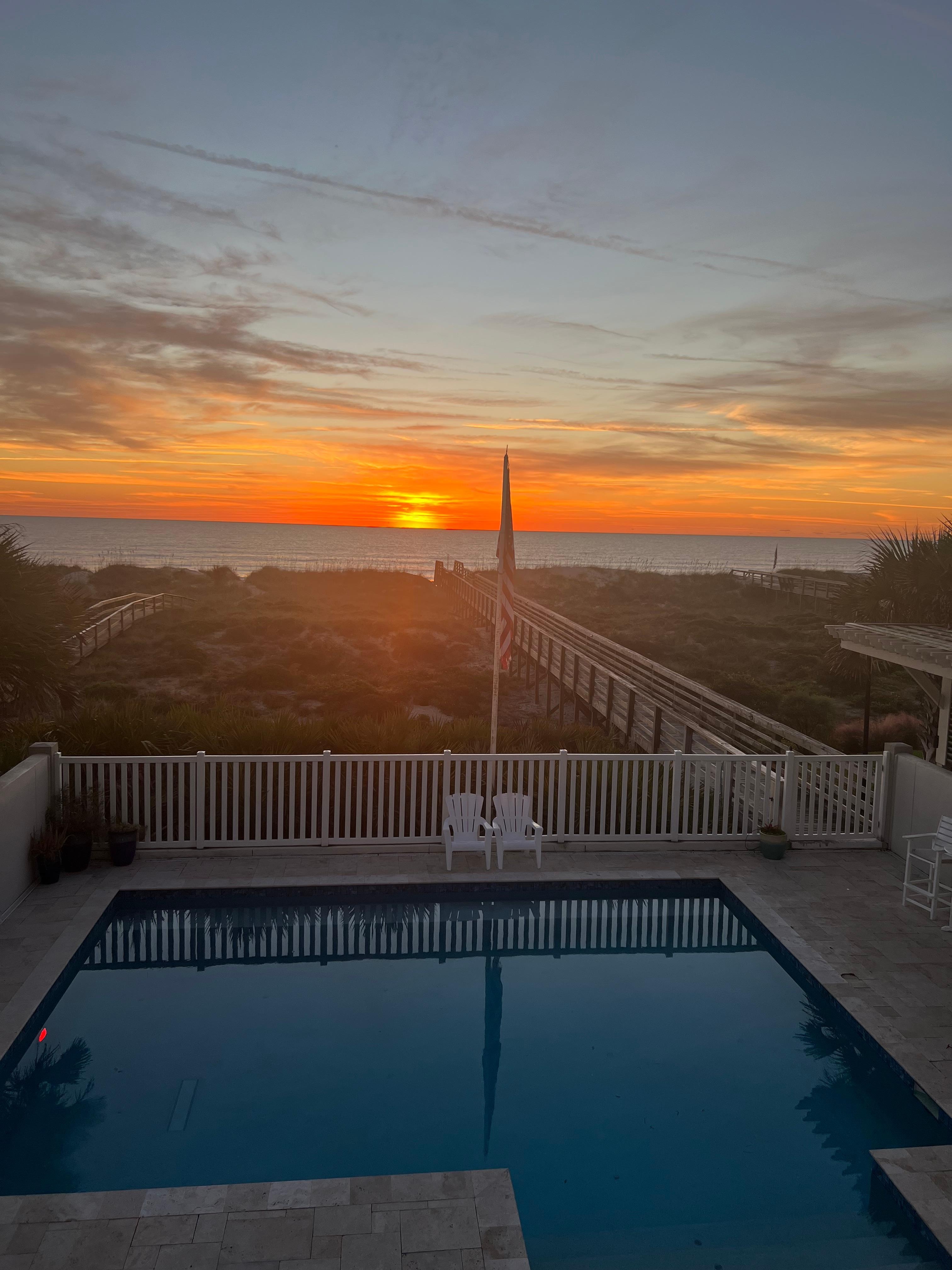 Welcome to Oceanfront Living at it's finest!! Amelia Island's luxury oceanfront home w/ unique offerings as the enclosed underground parking for 7 or more cars w/ elevator access, largest roof top party deck on island, designed for best ocean views, total of 6 bedrooms all w/ private baths & ocean view balconies, ( 5 King beds & 2 Queens) oceanfront pool, boardwalk to the beach! No expense was spared on this one of kind property. This home totals 7,438 sq. ft. 2nd & 3rd floor units have incredible views, balconies, currently 3 guest En Suite bedrooms, 2 full size kitchens, 2 living rooms, laundry room & dining room. Even has an commercial grade ice maker on the second level. The pool is large enough for multiple families & plenty of chairs & loungers. This home is perfect for large family gathering or group event! ***10% Cancellation Fee outside of 30 days. No Refunds inside of 30 days.