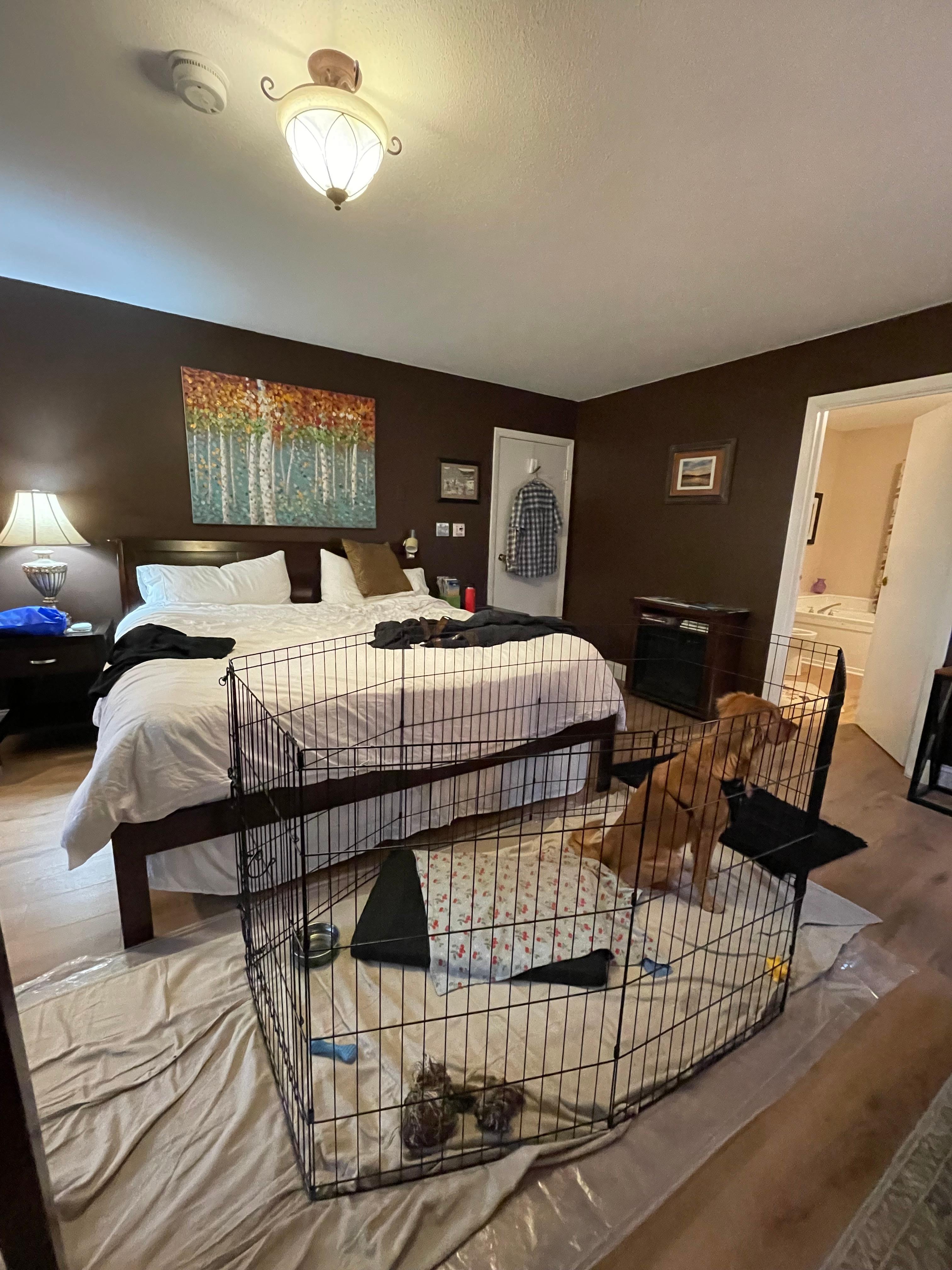 Amenities include private entry, covered garage, en suite bathroom with shower + jacuzzi tub, optional A/C and electric fireplace. Keurig, speedy wifi, minifridge, microwave, shared patio, tv, and games provided. Please note there is not a full kitchen, and for that reason we rarely accept stays longer than than two weeks. Pet comfort items including an orthopedic xl dog bed are available at no charge upon request.