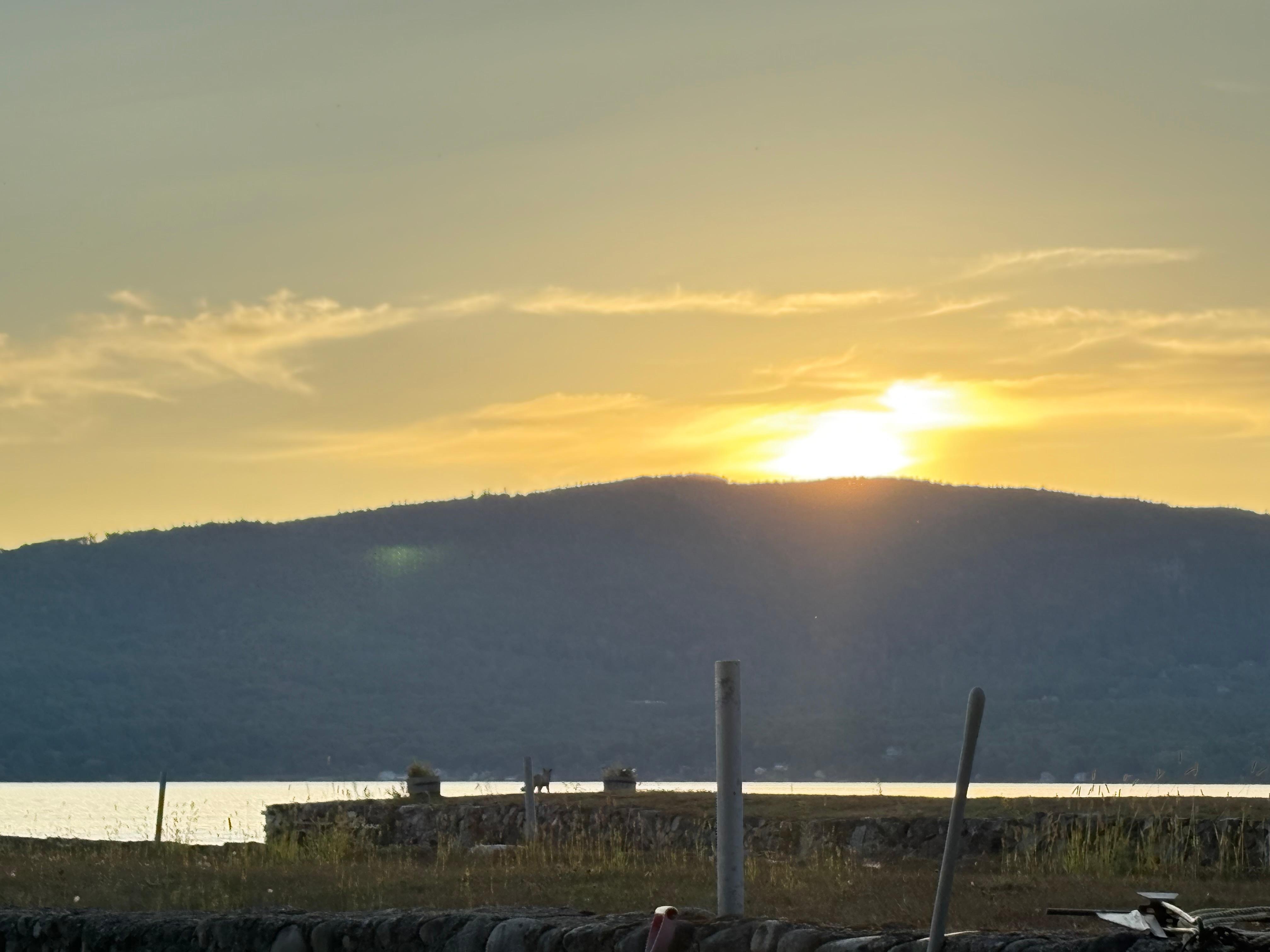 The photos led us to expect more space inside and out, and we were surprised by the small size of the bathroom, bedrooms, and kitchen. This is definitely not a workable place for three couples to stay, especially if five of the six people are over six feet tall! That said, the cottage grew on me after a day or two, and even the traffic noise became less annoying. The screened-in porch is very nice, with a nice lawn and grassy bank below the road making up for the disappointment of not looking at the lake or mountains. It's actually impressive how many different houses and cottages are fitted into the little area of lakeshore, and once you've walked to the beach area and focus on the lake the view, cool clear water, and bit of sand are quite satisfactory. The interior walls are white and there's not a lot of visual clutter. Two suggested improvements are: screens on more of the windows (at least one per bedroom!) and a less sensitive smoke alarm.
