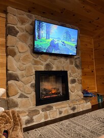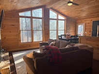 Our Whispering Hollow Cabin with majestic views of Hocking Hills Ohio welcomes you to all that Hocking Hills has to offer. This cabin has many luxuries and sleeps up to 12. Just a short drive to most area attractions, this is your home away from home. We have sought to equip this cabin to high standards and to anticipate your needs for a luxurious stay. From the adjustable king bed and freestanding soaking tub to the dancing flames of the fireplace, this home is full of extras sure to pleasantly surprise you around every corner. We have made every effort to make our cabin a relaxing and luxurious comfort for you to enjoy! Please note that this home has a little steeper than average steps to lower level and anther set of nature steps to the firepit. Not suitable for mobility impaired.