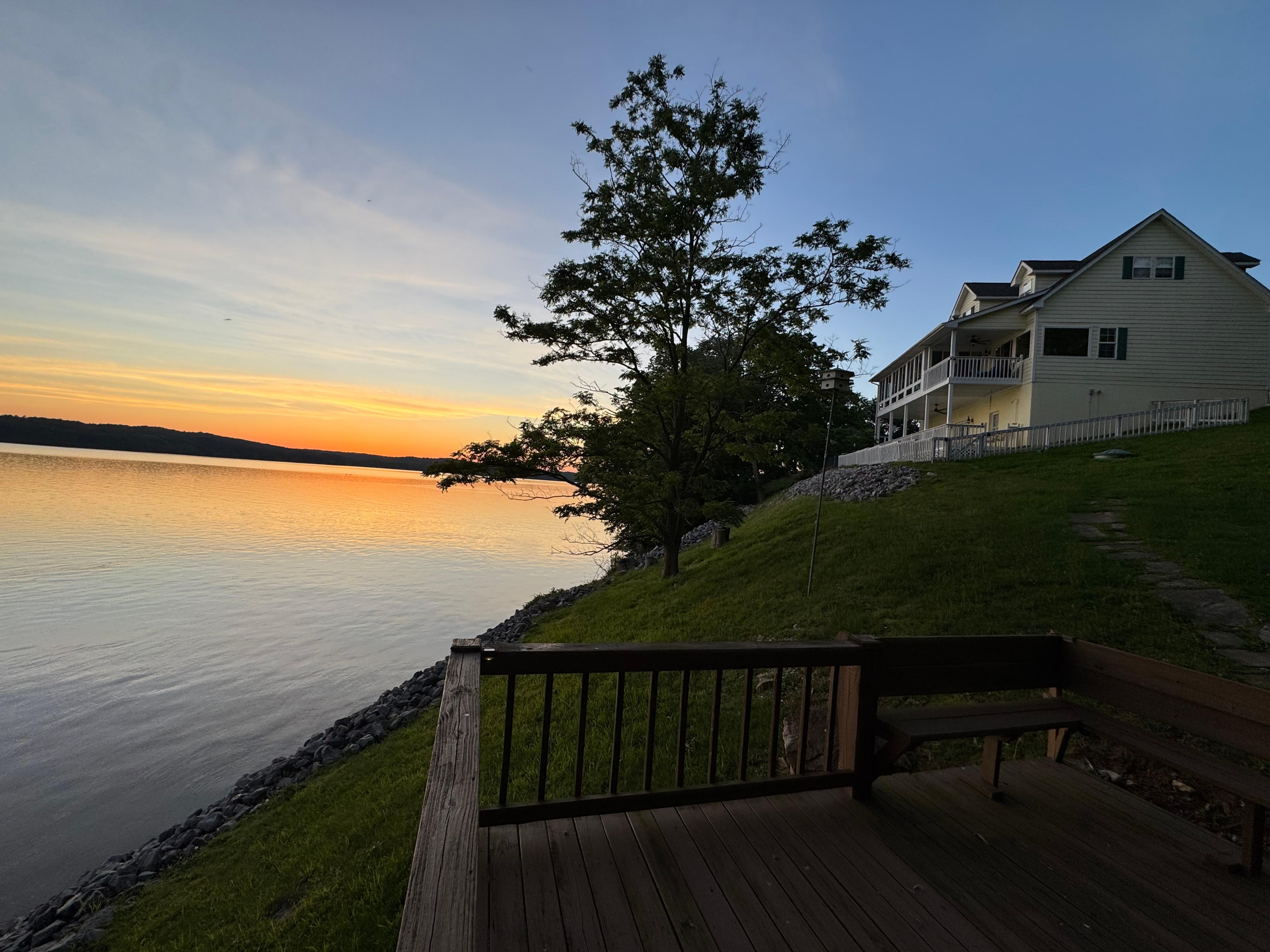Enjoy the fresh air and picturesque scenery from three expansive decks. Curl up in the large sunroom year round and enjoy breathtaking sunsets. Relax, lounge and grill out on the lower deck while riverboats and barges cruise by. Build a fire in the oversized firepit, kick back in the adirondak chairs and enjoy the quiet evenings on the lake. Very low light pollution out here so you can see all the stars and enjoy tranquility of nature. The home is located on a quiet circle which is great for walking or bike riding. You are only minutes away from Land Between the Lakes National Park and Lake Barkley State Park. Endless activities to access - 100+ miles of hiking trails, Elk and Bison Prairie, hunting, fishing, planetarium and observatory, boat and kayak rentals, seasonal horseback riding. outstanding restaurants and shopping are close by in Cadiz, KY.