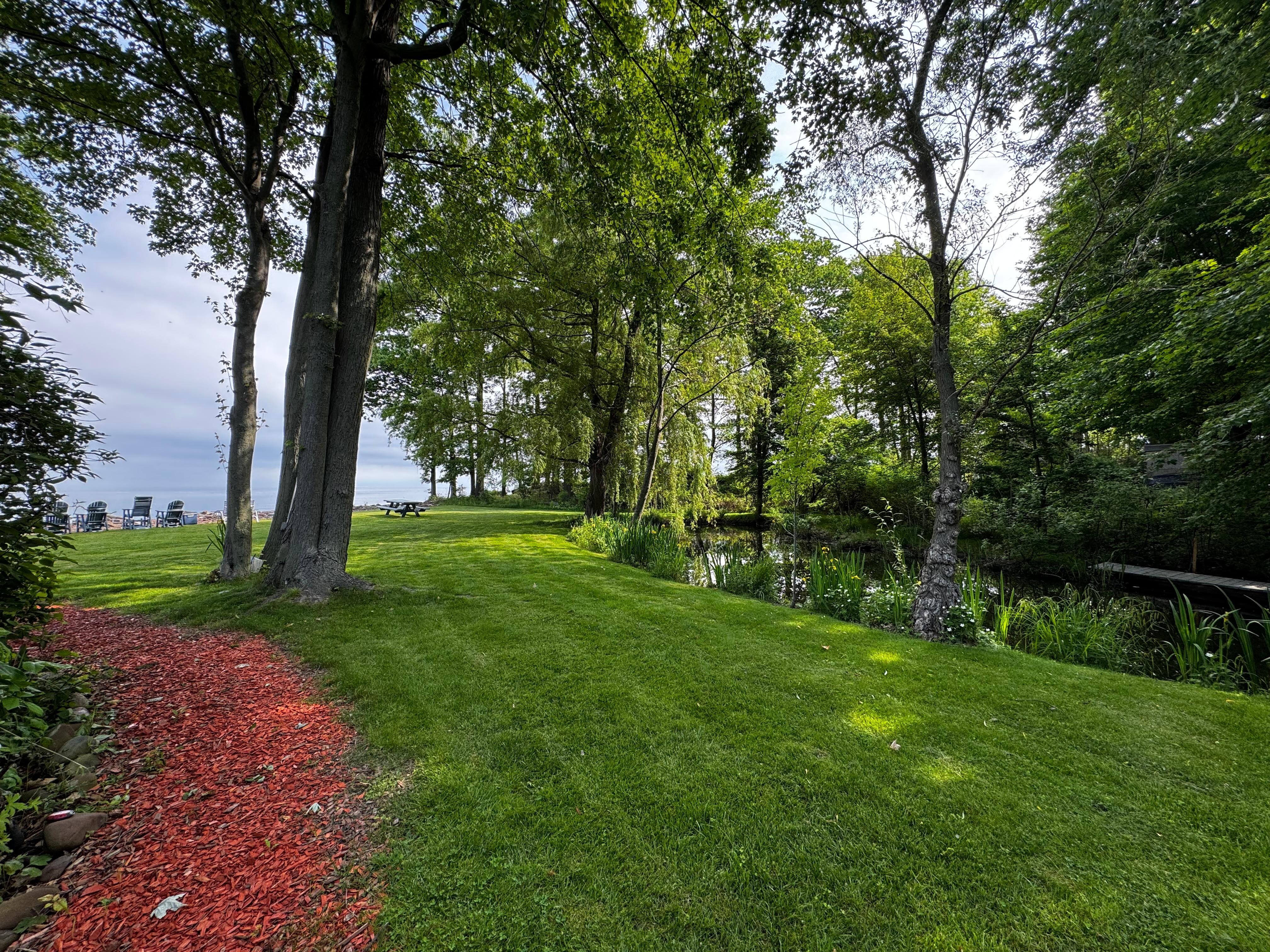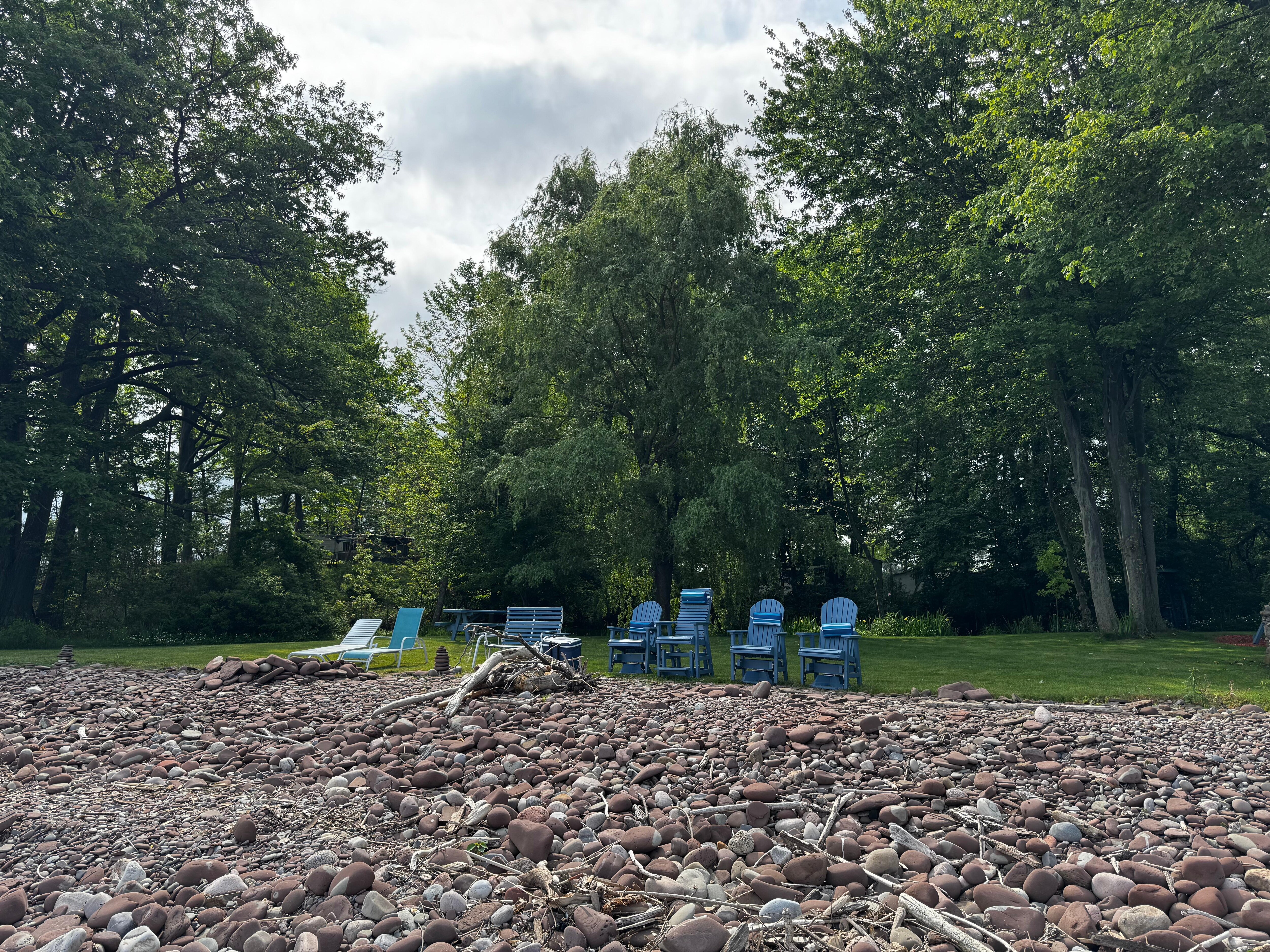 This bungalow cottage and property are ideal for individuals or families seeking a private and quiet setting and who enjoy being close to nature. A gradual 160-foot-wide stony beach provides easy access to Lake Ontario for swimming, snorkeling, rafting or launching kayaks & canoes. (Larger water craft, e.g., jet skis or boats can be launched at the nearby marinas or state boat ramps.) Adjacent to the beach is a large 60 x 100 ft lawn that’s perfect for kicking the soccer ball, tossing the baseball, or just relaxing on the lounge chairs in the sun as you watch the occasional boat or birds pass by. Enjoy spectacular sunsets as you roast marshmallows on a beach bonfire while your kids play on the swing set or catch frogs in the nearby pond.