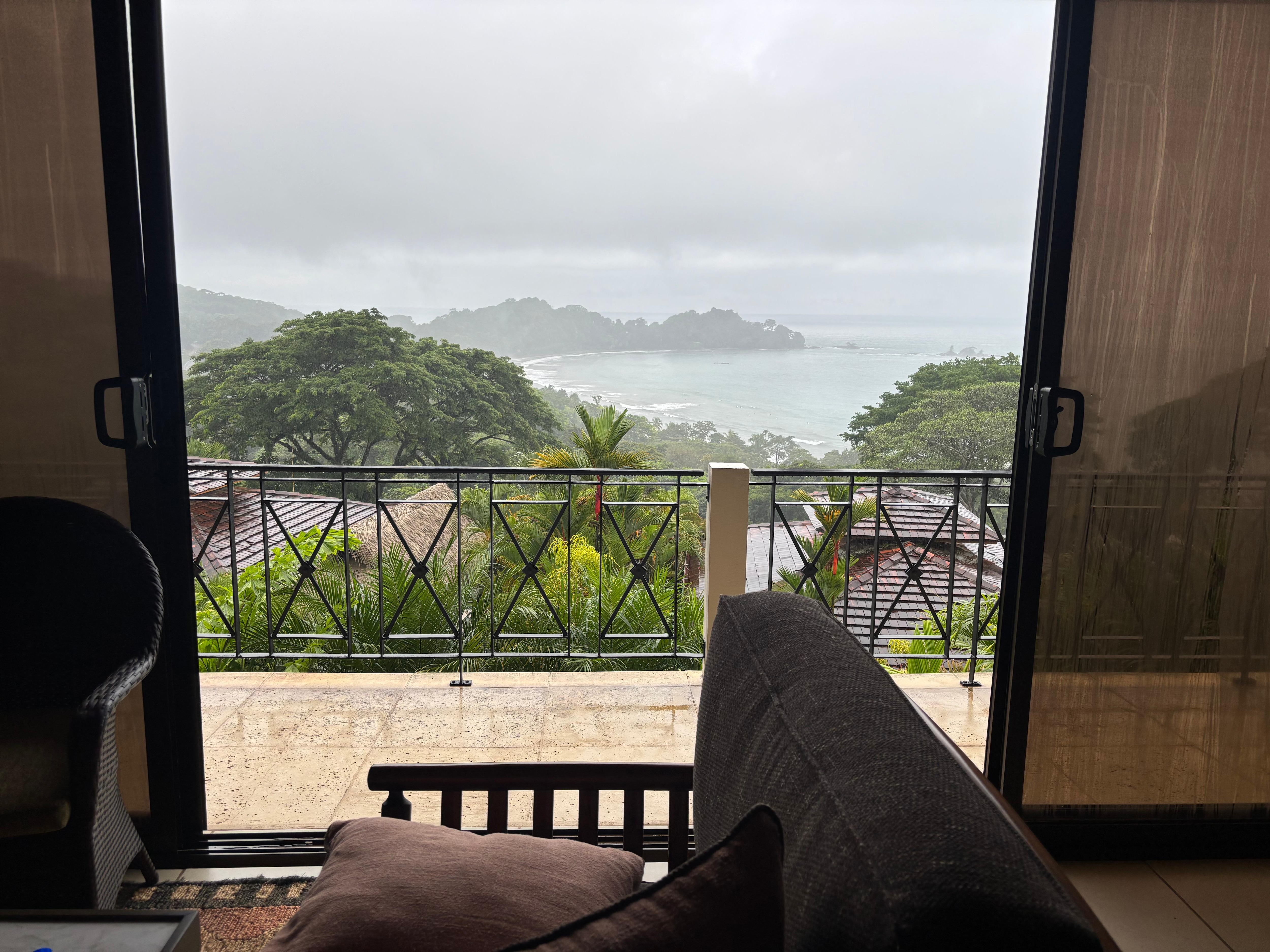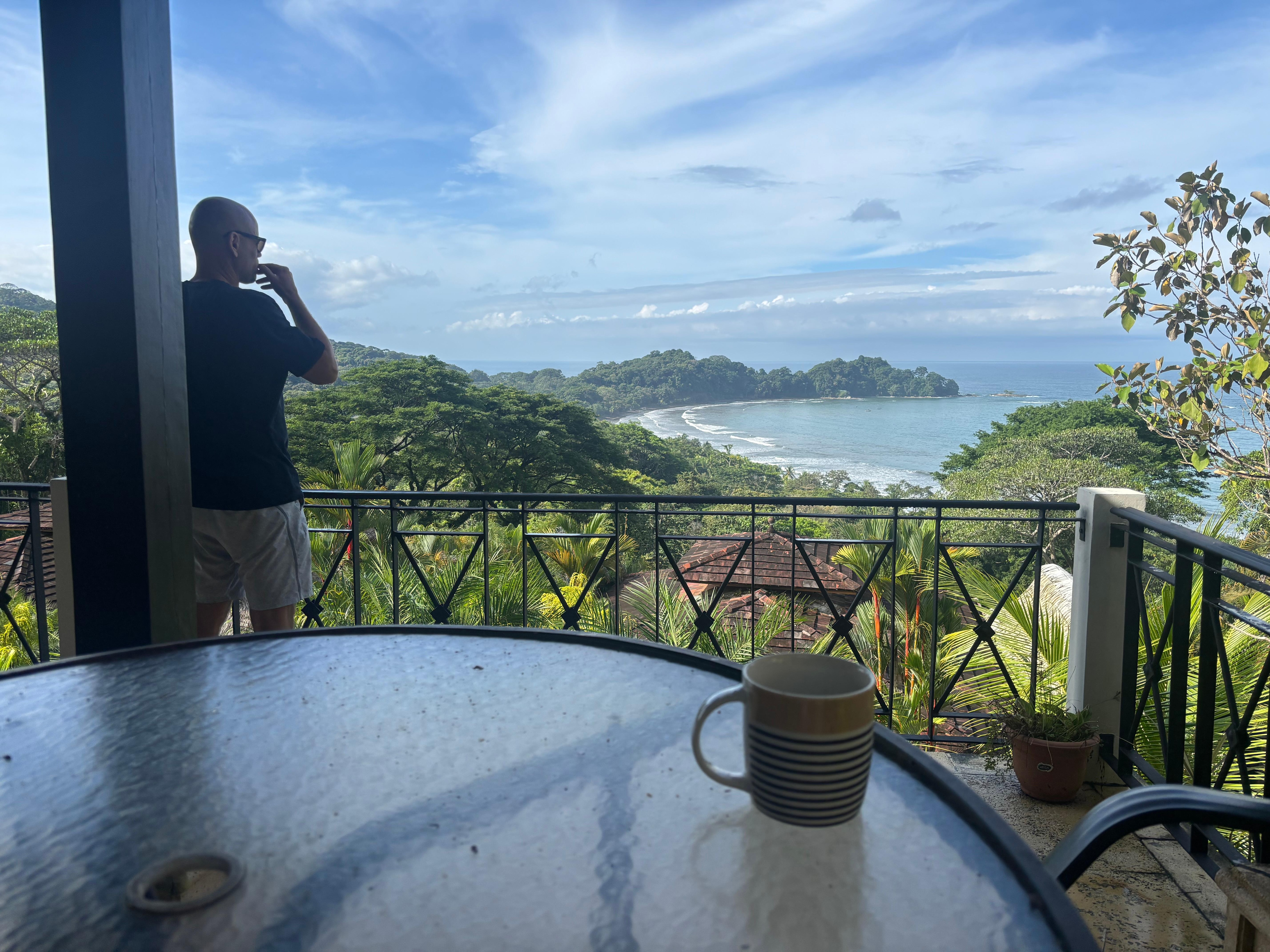 Amazing views. Incredible location. Beautiful space. “Villa Tranquila” is a 2 bedroom, 2.5 bath home offering breathtaking, panoramic views of ocean and green hillside. From the large wrap around balcony you can hear the waves of the surf, enjoy your private pool, grill a delicious dinner, and simply relax in this private space. Located just a 8-minute walk to the beach, and close to shops, restaurants and tourist attractions, you are sure to have a memorable Costa Rica experience.
