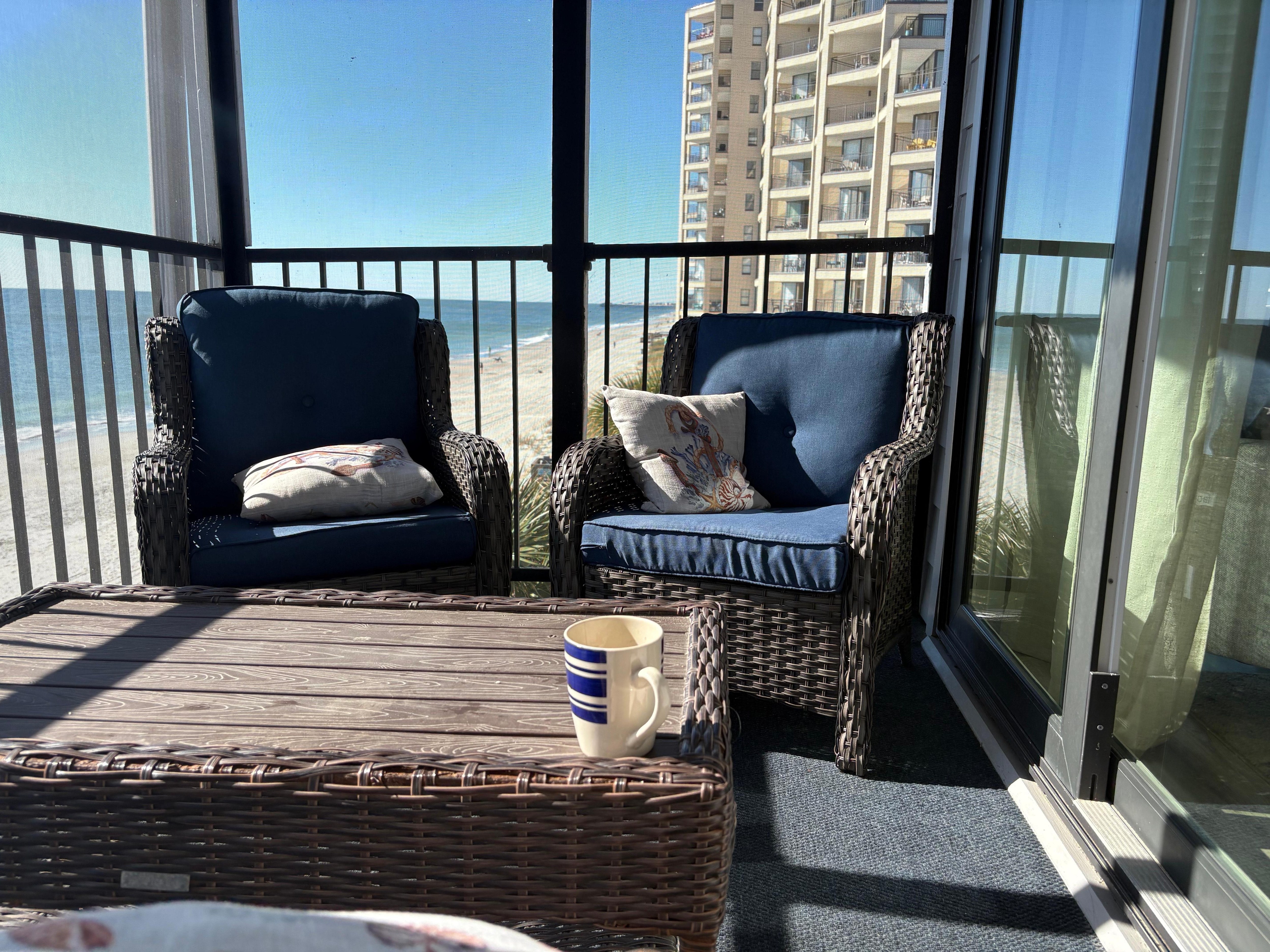 Welcome to our modern & relaxing Ocean Cove 305 condo. A Bright and Beachy 3 bedroom 2.5 bath Oceanfront Condo in the centrally located Ocean Cove building on the border of Garden City Beach and Surfside Beach. Our unit features a fully updated kitchen and living room furniture, 2 flat screen TVs with cable, high speed WIFI, in-unit Washer and Dryer, central AC, and two Oceanfront Balcony with ample seating for the whole family. We also provide a storage shed equipped with beach chairs, beach mats, and umbrellas, perfect for the guests who are flying in.
