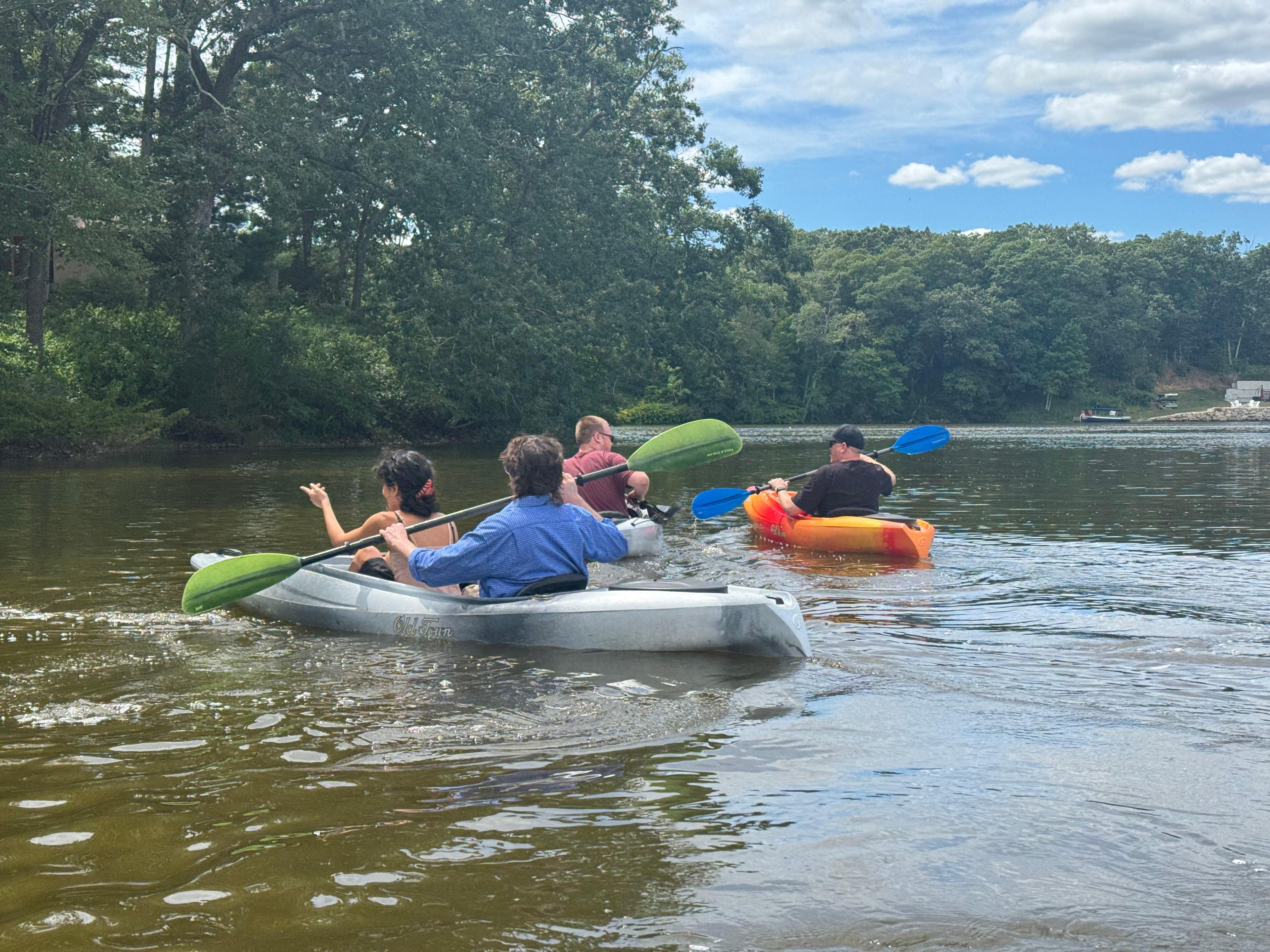 Just listed on VRBO, this kayakers paradise contains a waterfront home secluded on 2.5 wooded acres along the Mystic River. Unparalleled views of the water, tidal marsh, woods, and wildlife are constantly changing and visible from every room. Owned by two designers, this home’s modern aesthetic has interesting art, objects, furniture, lighting & textiles. Dine & relax on the porch, paddle kayaks on the river, walk or ride bicycles on the scenic road into downtown Mystic, or visit nearby beaches and family destinations.
