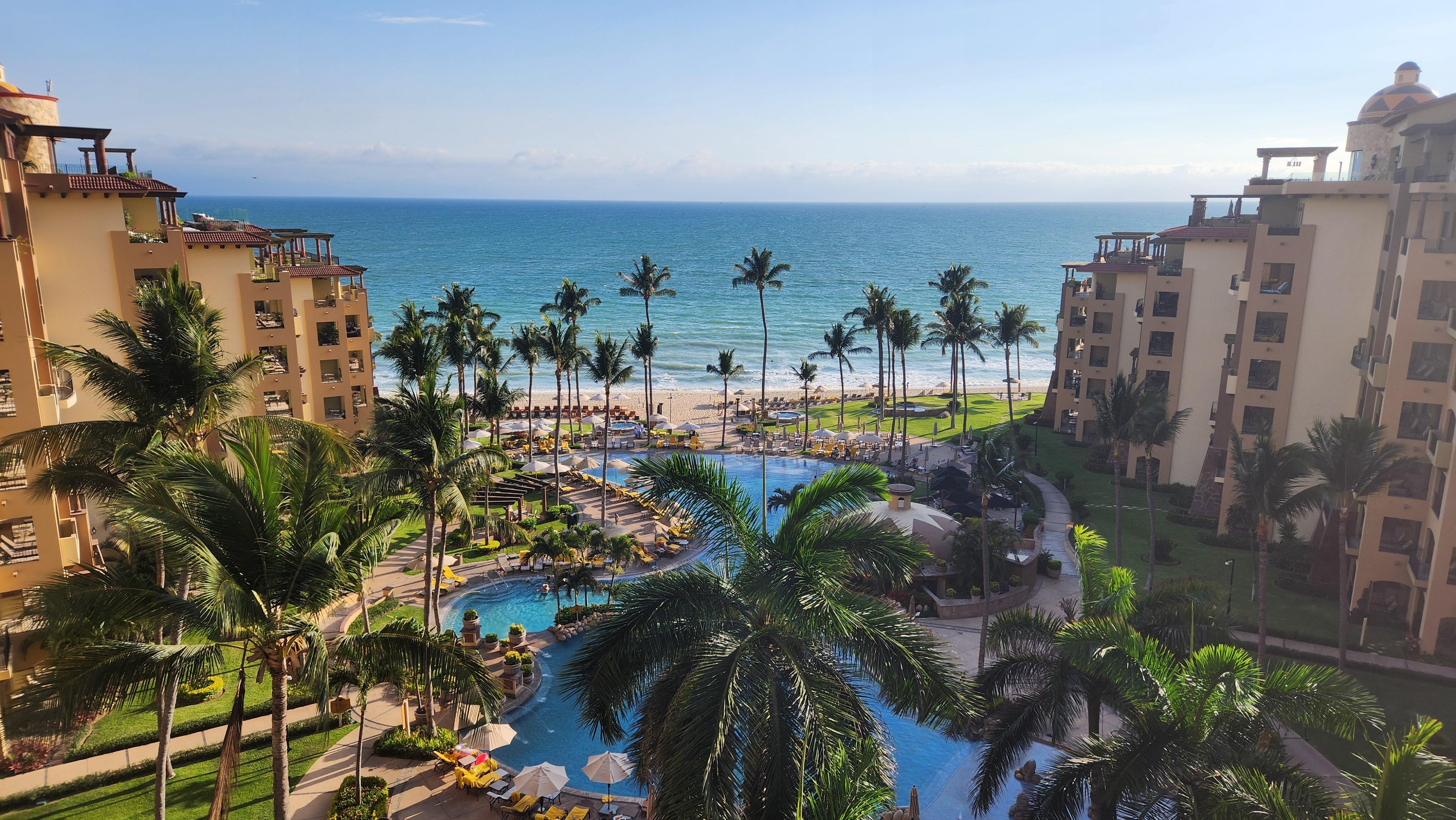 Just steps from the beach Banderas Bay, this beautiful luxury condo offers world class amenities along with the exclusive privacy of Villa La Estancia resort. Up to six people can comfortably stay in this 2BR/3BA, 2100 sq foot condo. The primary bedroom features a king bed and the ensuite bath features a walk-in shower and jacuzzi tub. You'll wake up to views of the beautiful Pacific Ocean from your bed! The 2nd Bedroom features two queen beds with its own bathroom, and the living room has a queen-sized sleeper sofa. The villa has a fully equipped kitchen, living room, dining room, and in suite laundry.
