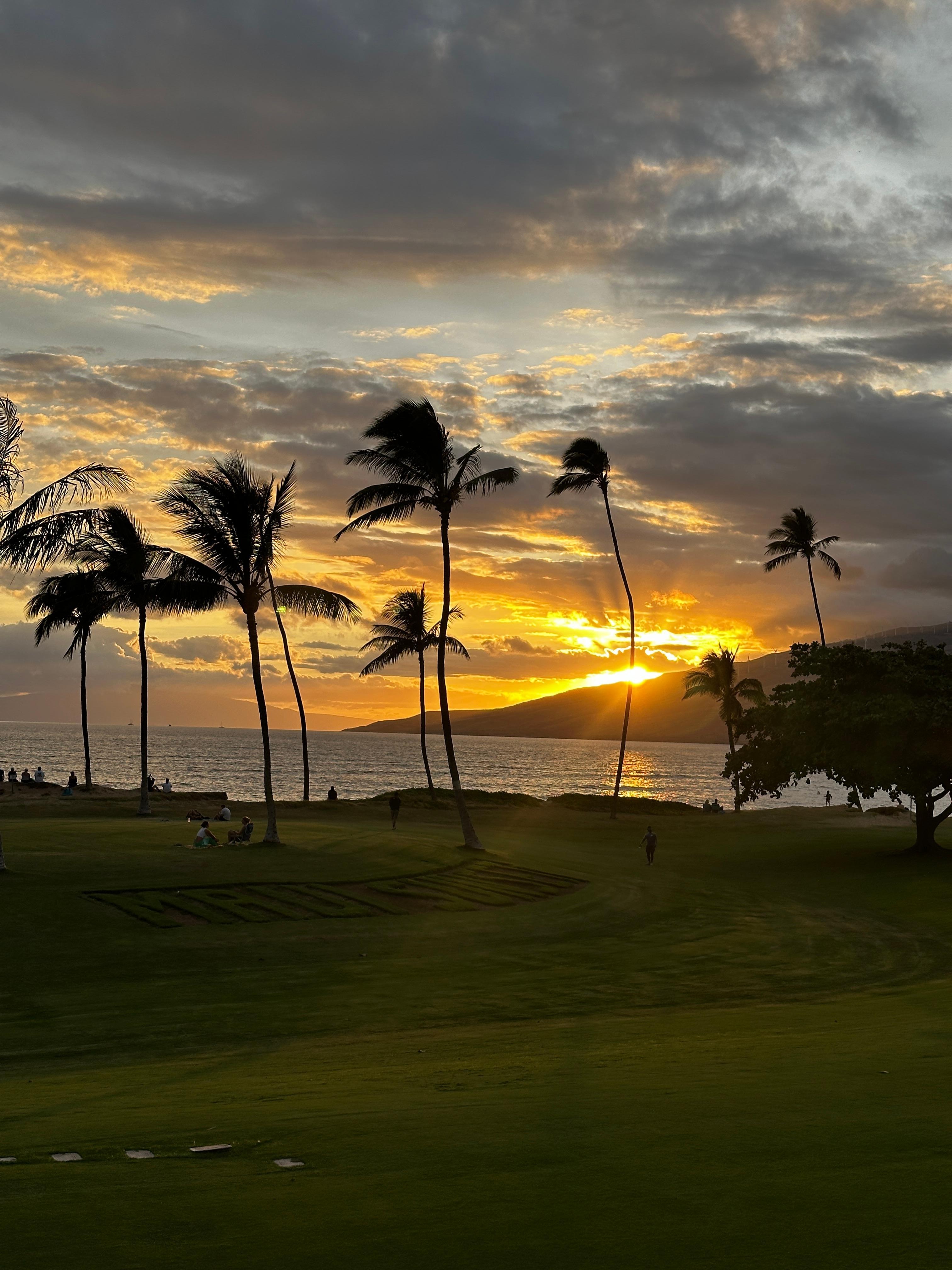 Maui Sunset is located on the ocean in sunny Kihei on 5.5 beautifully landscaped acres overlooking crystal blue pacific waters. Your island days can be filled with recreation and fun. Swim in Maui Sunset's beautiful pool with a shallow end for small children or enjoy relaxing in the jet spa. This lovely resort also offers two free play tennis courts, shuffleboard courts, putting green, croquet, an exercise room, BBQ grills, etc. Shopping and restaurants are just ten minutes walking distance away. Championship golf courts within a few minutes drive. Watch the sun rise over Haleakala Crater and set in the beautiful blue Pacific.