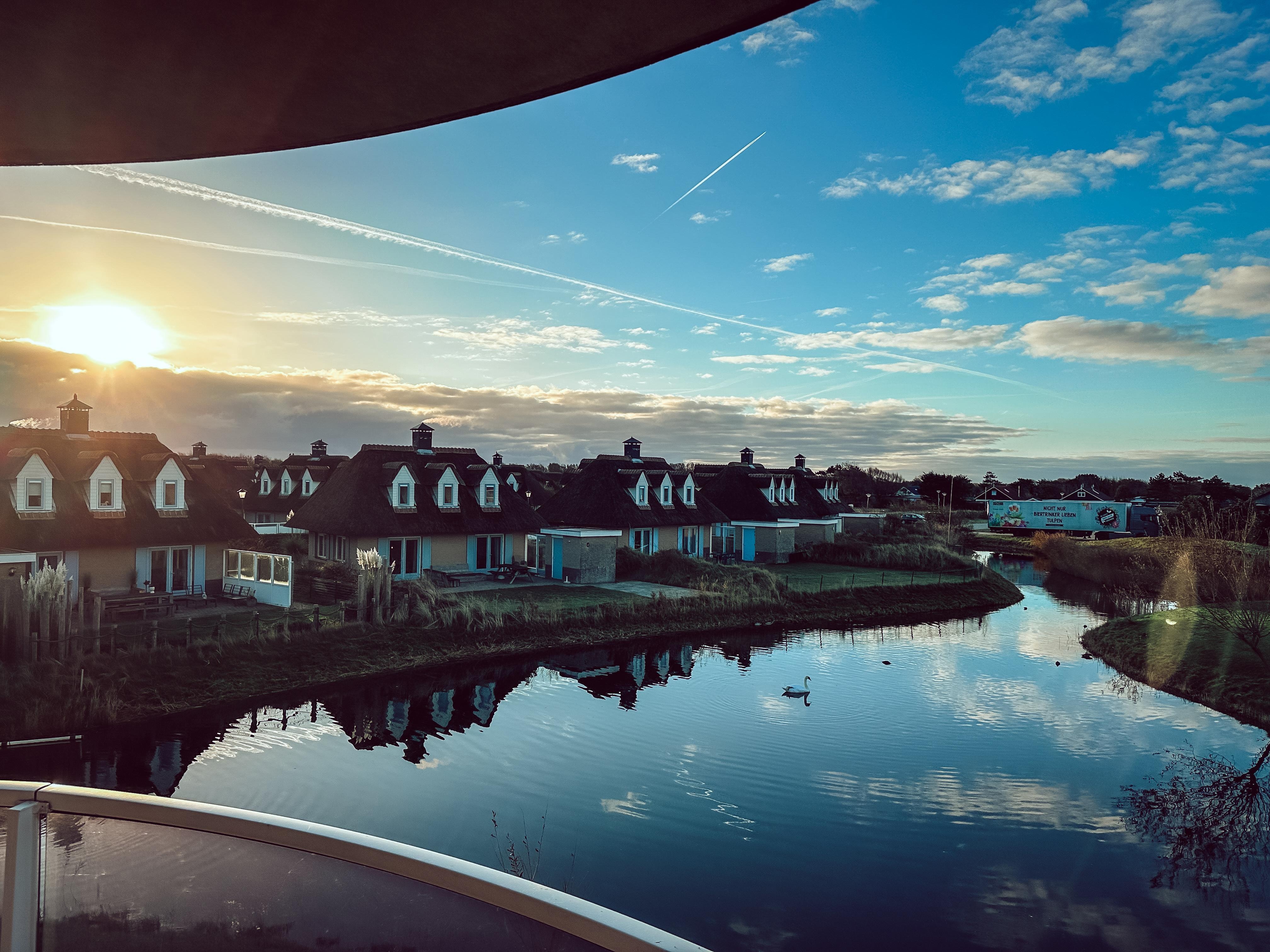 In the light-flooded, spacious living area with a beautiful view of the natural ponds, with access through 2 sliding doors to the balcony, there is a large, new flat screen with all German programs via satellite, in addition a Blu-Ray DVD player, a stereo and free Internet access ,