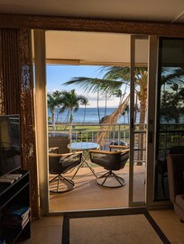 When your day of activity is done, sit on the large lanai with dinner from one of the dozens of restaurants in walking distance and watch the gorgeous sunset skies. During whale season, you will be mesmerized by these magnificent creatures frolicking just off shore. All year round, you will be treated to the sight of local fishermen pulling a fresh catch out of the water and the tantalizing aroma of experts plying their BBQ skills in the park.