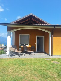 The "Verbena" apartment is located on the first hill above Stresa (about 250 m) and has panoramic views over Lake Maggiore and the surrounding countryside and mountains. It is surrounded by a large, fenced garden and is only 1 km (5 minutes in the car, less than 10 minutes on foot, via a private footpath) from the bustling town centre of Stresa. The location is very peaceful and quiet.