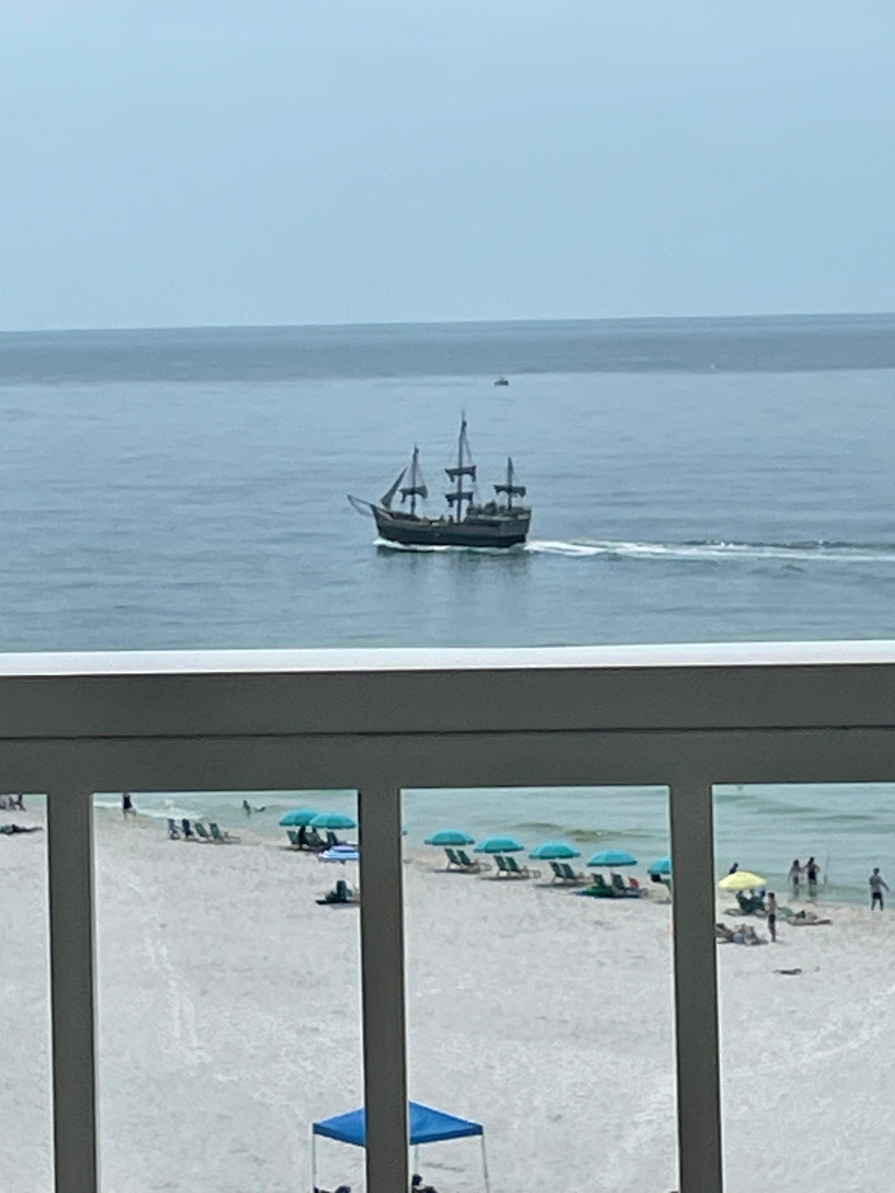 Our three bedroom, 2 bath unit for 6 people provides the ultimate vacation experience. This beautifully appointed condo is an eighth floor corner unit (4807) with a wrap-around balcony that lets you see the white sand beach and the beautiful Gulf waters, We also have a view of our gulf side pool and beautifully landscaped grounds. There are several picnic areas with grills on the property along with tennis courts, an exercise room, two outdoor pools, shuffleboard and a gazebo. The indoor pool offers changing rooms with walk-in showers as well as a sauna and steam room. The condo has 3 cable TV's and free Wi-Fi Internet service. The master bathroom has a walk-in shower and the master bedroom an adjustable king bed. PLEASE NOTE THAT THIS CONDO RENTS SATURDAY TO SATURDAY ONLY IN JUNE & JULY.