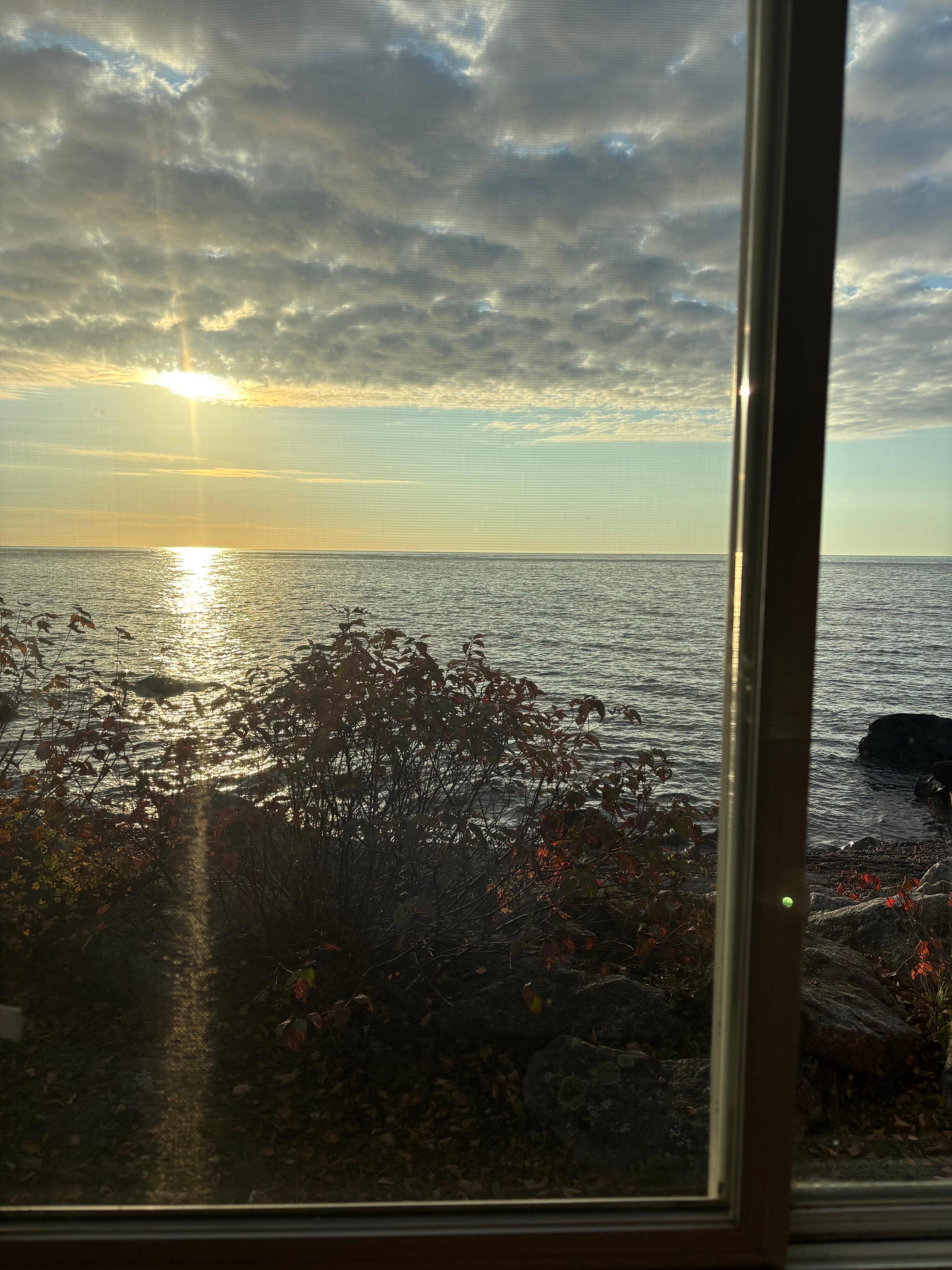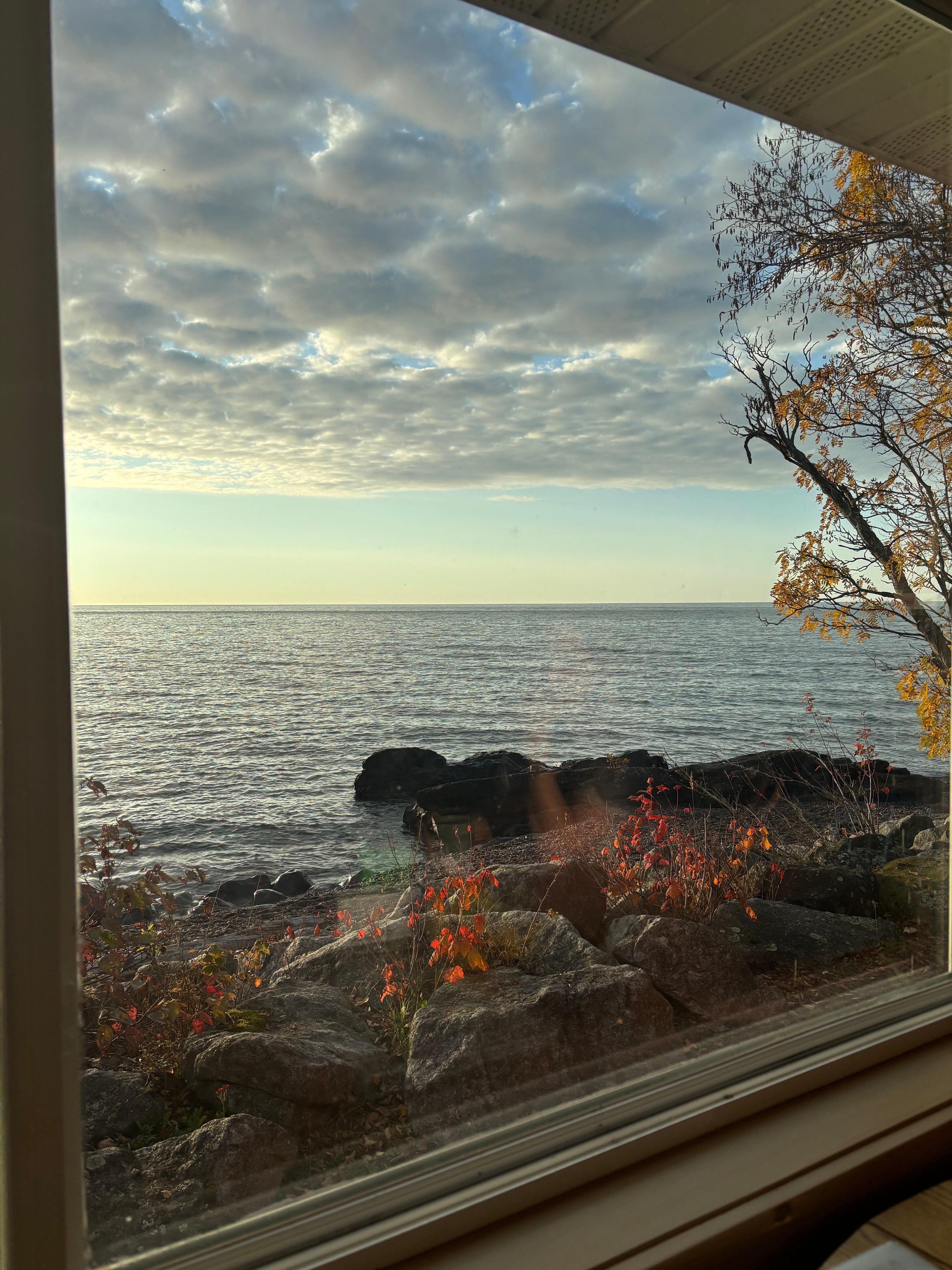 Are you looking for a quiet place to relax or to explore the North Shore? Superior Reflections Cabin #1 on the shore of Lake Superior is calling for you. THERE IS NO WIFI in this 2 bedroom, 1 bath cabin. There’s 2 twin beds in one bedroom and a full in the other bedroom. There’s a small kitchen with basic necessities attached to the main room. The dining table is in front of the window so you can enjoy the view while eating or just sitting around visiting. The living space has a couch and 2 chairs. There’s also a TV with a DVD player and HDMI input for watching movies. Outside there’s a picnic table and charcoal grill.