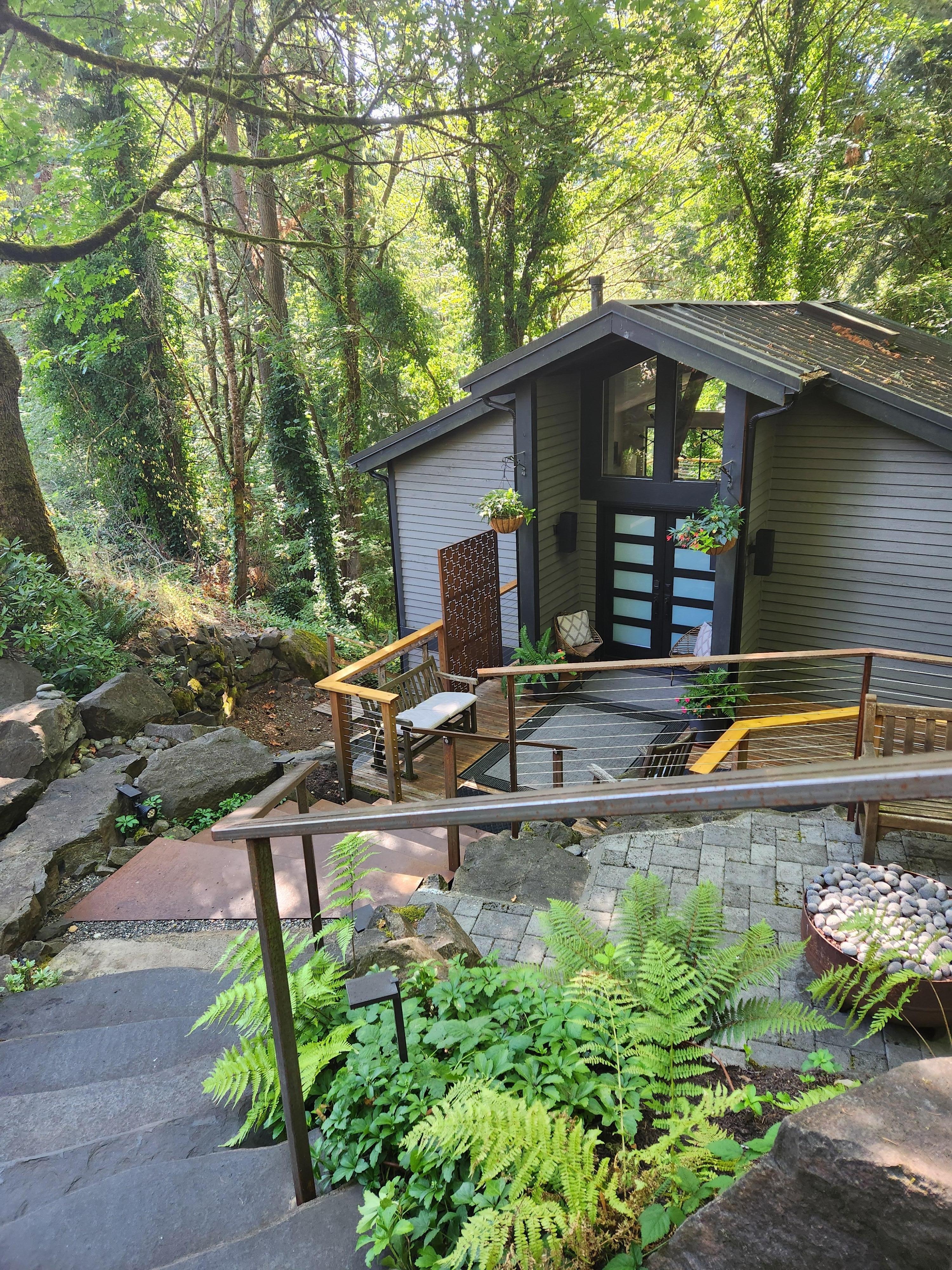 This beautiful little chalet has been our pandemic project. Our Squak Mountain tree house offers a truly unique sense of privacy and tranquility in the lush green canopy. Guests enter the home by a cascading waterfall. There are two 28 foot cedar decks (hammock) and a spacious open great room featuring a gas fireplace and kitchen. Will comfortably sleep 4-5 people. No more than 5 people allowed at any time. Walking distance to downtown Issaquah and hiking trails. Absolutely no parties permitted.