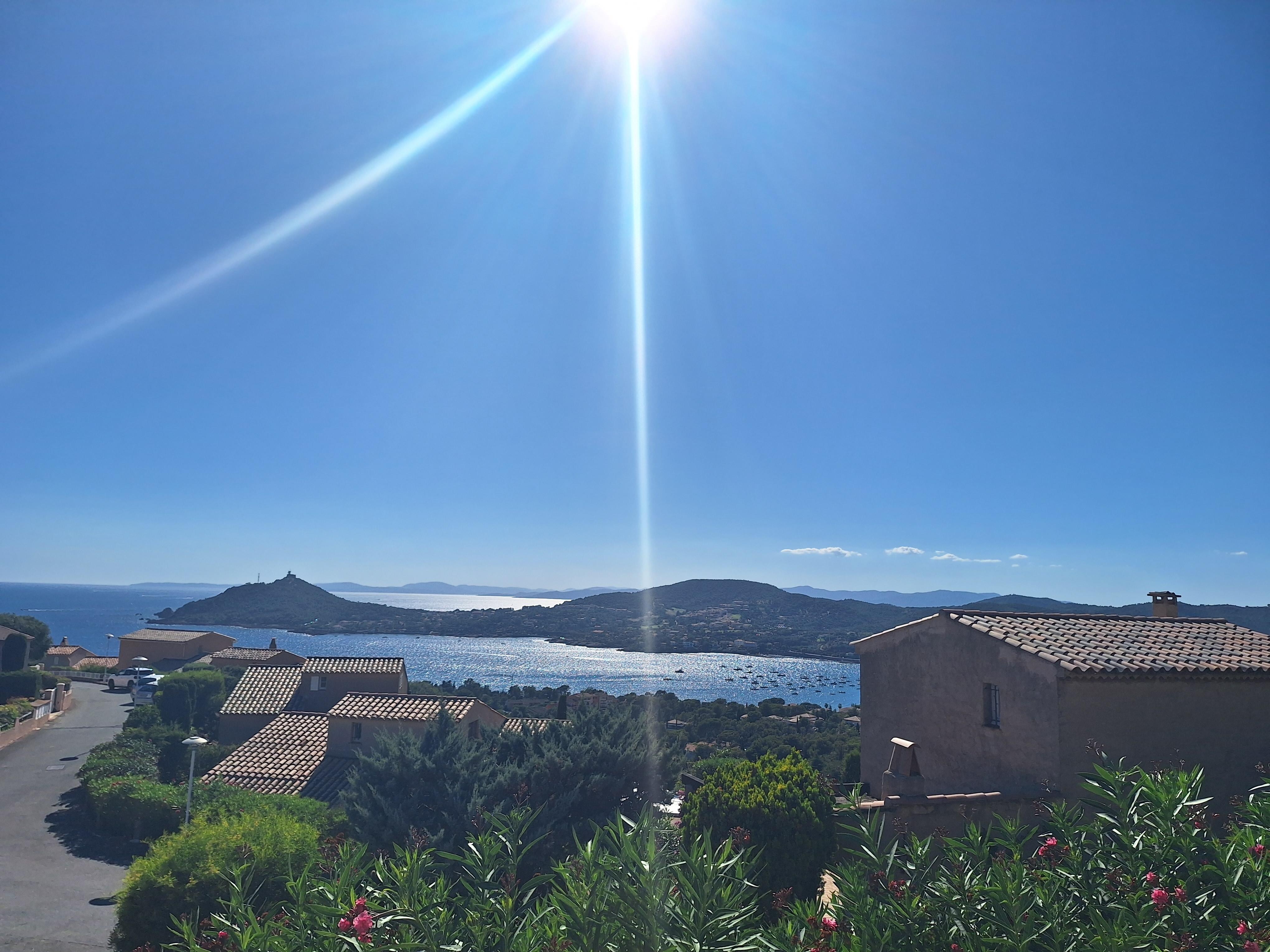 It consists of two levels: an entrance hall, a bright living room with table and chairs for meals inside. The living room opens on the sea side onto a beautiful terrace in the shade of the awning and the olive tree. There is also a lounge area with a sofa and armchair facing the TV, and a fully equipped kitchen.