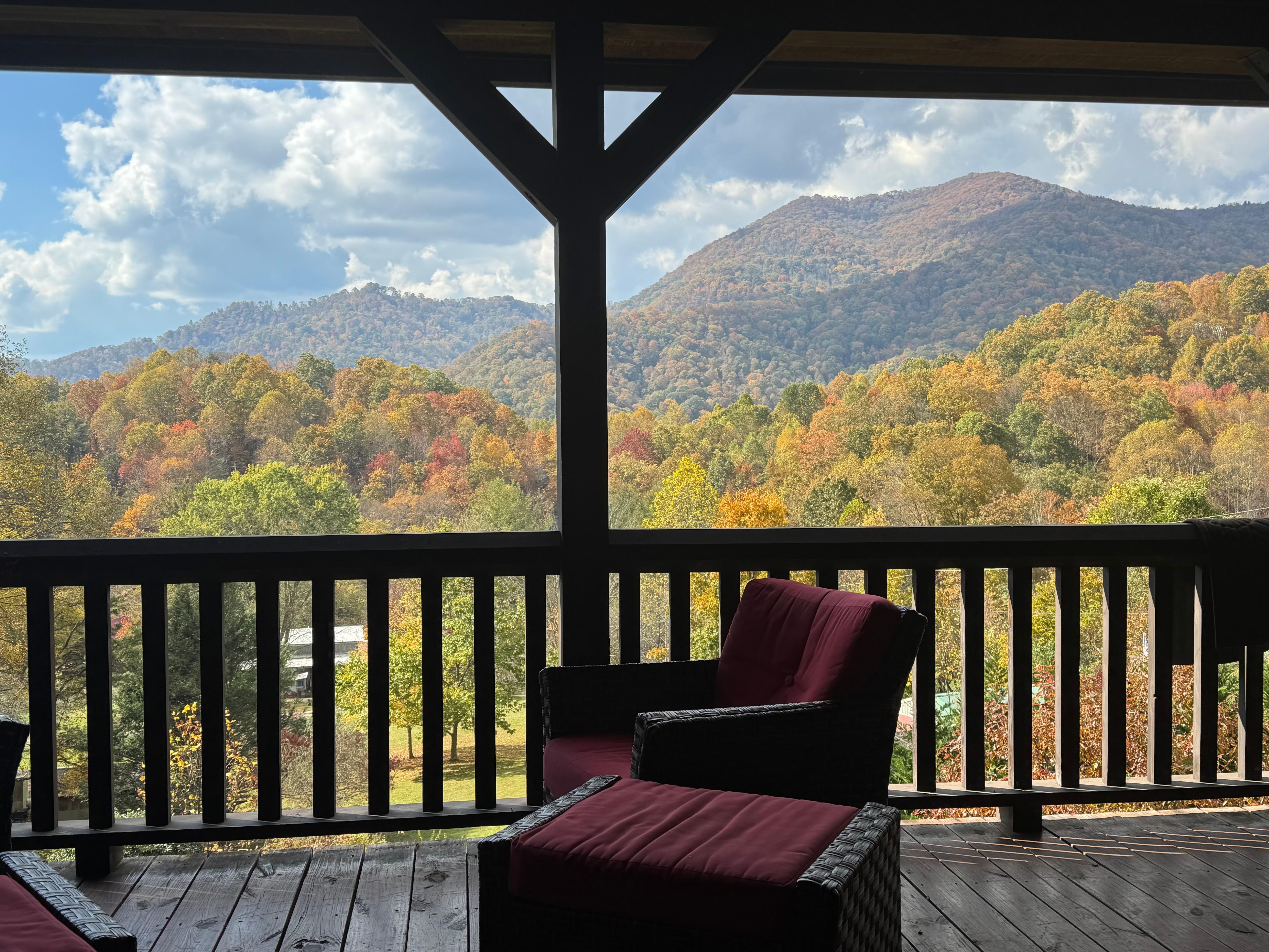 If the inside space isn't enough, move on out to the 4,000+ sq. feet of covered porch. With breathtaking views of Crabtree Bald, hot tub, tons of rocking chairs, tables, games, etc., you may not want to go back inside! Start a camp fire at the large fire pit and let the stories begin. If the chairs are not already around the fire pit, they should be stacked underneath the porch just to the side of it.
