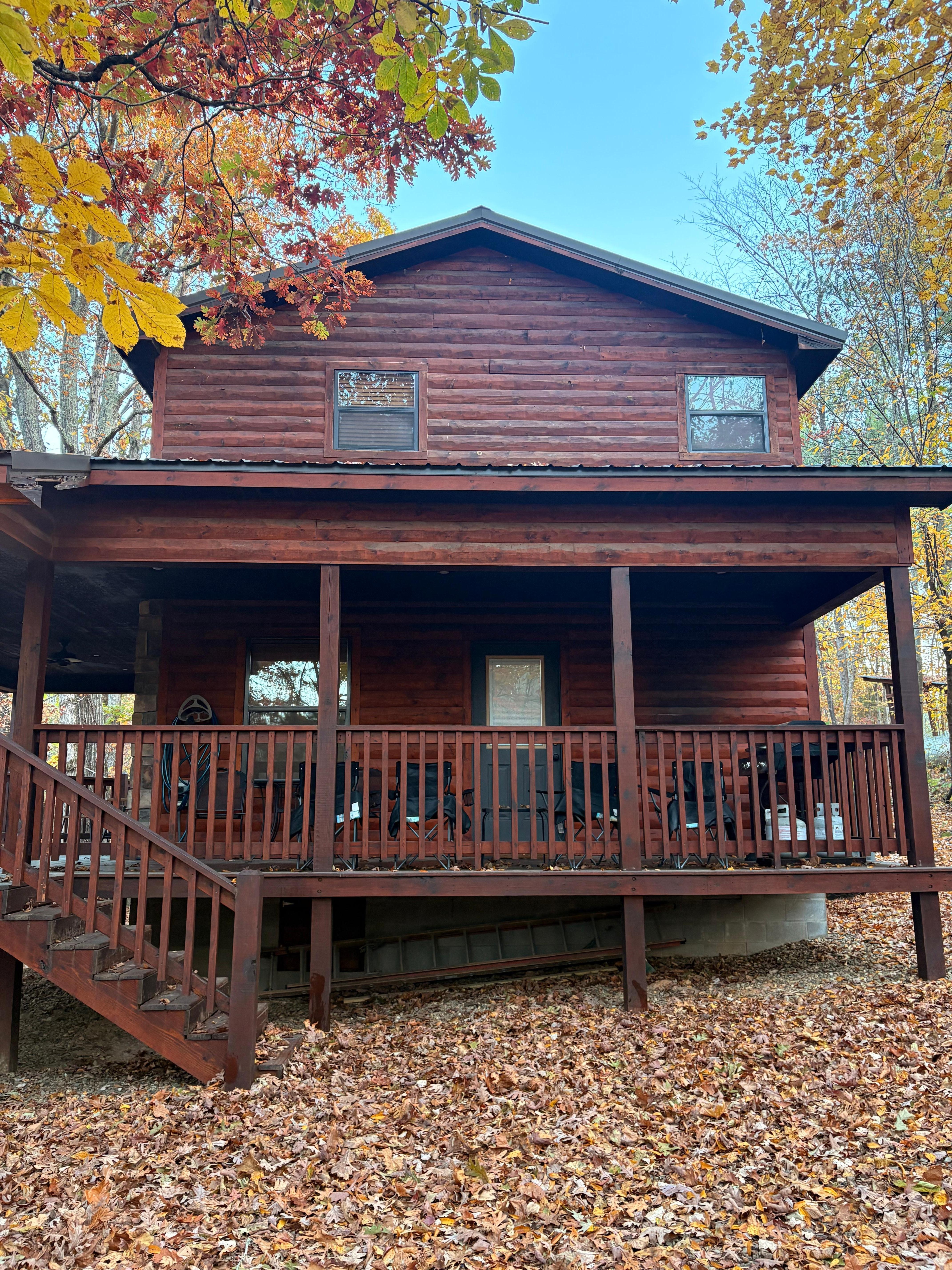 Trail's End is your final destination in Hochatown! Relax at the end of your journey in this 2 bed, 2 bath cabin that overlooks East Lukfata Creek. Enjoy the large deck, covered hot tub, and steps leading to a fire pit with seating. With tall windows, enjoy the view from the comfort of your couch and gas log fireplace. An open floor plan to a full kitchen ensures plenty of room to stretch out. It offers a king bedroom upstairs with attached bath and a queen bedroom downstairs. Bring your boat or ATV as the cabin has a circle drive big enough for your toys. Wi-Fi and DirecTV keep you connected even while you're away. The cabin is pet friendly with a maximum of 2 dogs allowed. The additional pet fee is $35/night. The cabin also offers a propane grill and washer and dryer for use.